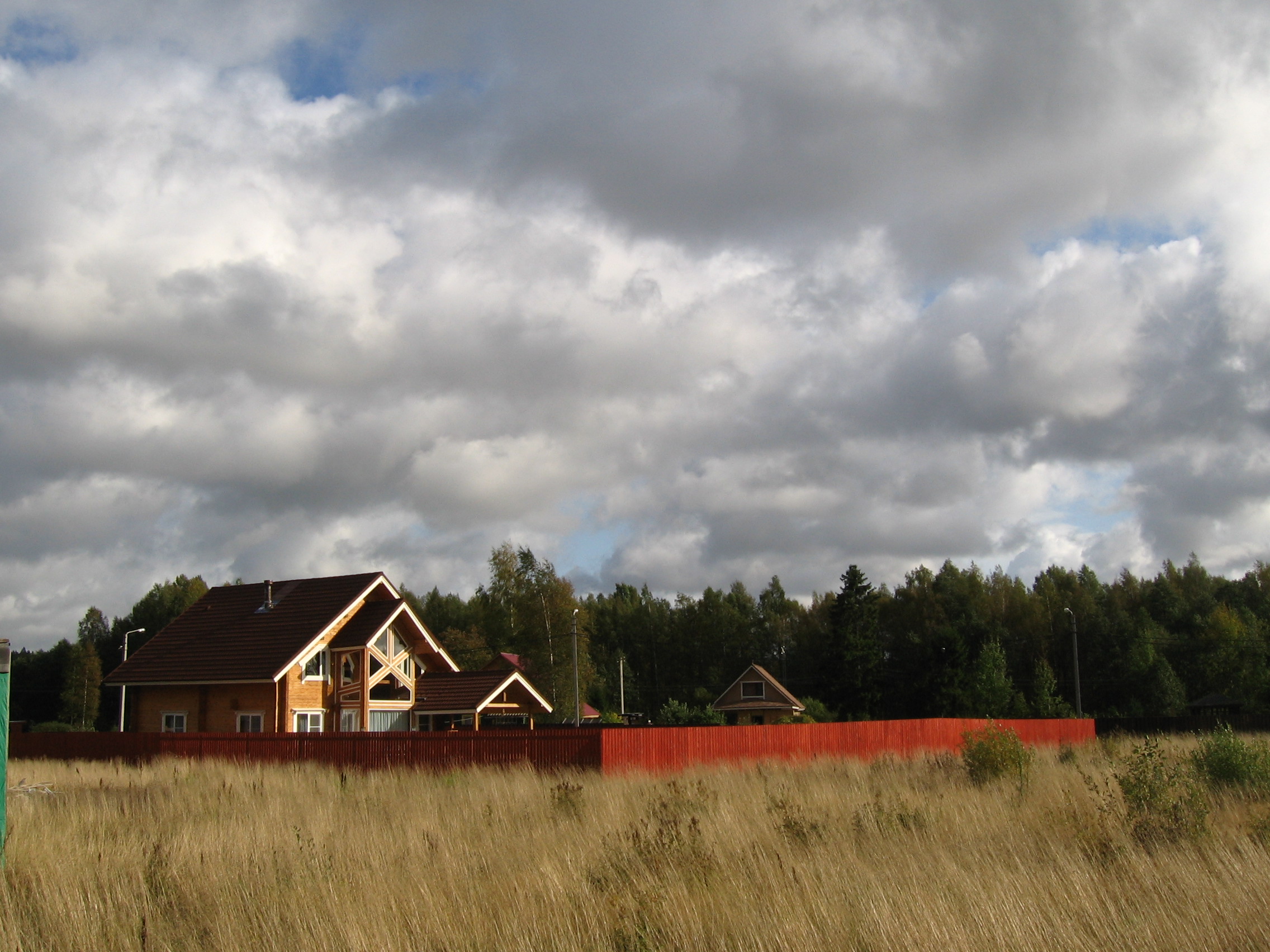 Двигаясь от поселка Победа в сторону шоссе А-125 первым мы осмотрели поселок «Радуга» компании СоюзТеплоСтрой. Поселок располагается за поселком Победа, не доезжая поселка Каннельярви. Подъезд к поселку – грунтовая дорога, в невидном месте отходящая от шоссе. Без консультаций по телефону с застройщиком, найти его было бы крайне проблематично. Территория поселка представляет собой фрагмент большого поля, примыкающего к лесу. Но поле давно не использовалось и заросло густым мелколесьем, так что неприятного впечатления не производит. В поселке 27 домов, располагающихся на участках примерно по 20 соток. Дома – небольшие, скромные, площадью 134-196 кв.м., строятся из бруса или по каркасной технологии. Уже построено и продано около восьми домов, еще несколько активно строятся. Владельцы домов ведут благоустройство участков: строят бани, ставят заборы. В продаже есть как почти готовые дома, так и дома на стадии строительства, и просто земельные участки. В стоимость домовладения входит уже установленная локальная канализация (используется достаточно сложное и неочевидное решение, с принудительным явно российской конверсионной разработки), 10 квт электричества, водоснабжение из скважины. Отопление домов – радиаторами, но владельцы могут сами решать эту проблему и иными способами. Правда, пока что водоснабжение еще не подключено и владельцы домов роют на участках неглубокие, примерно 5 колец, колодцы. Планируется недорогая инфраструктура: парковка, детская площадка. На сегодняшний день, в продаже 6 домов, либо готовых под чистовую отделку, либо активно достраиваемых, по цене 3,5-5 млн рублей за домовладение.