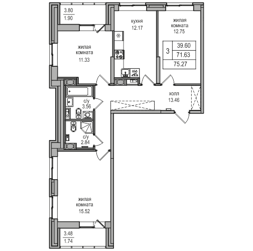 Отличный вариант для тех, кто хочет купить трехкомнатную квартиру в новостройке Санкт-Петербурга. Кирпично-монолитный 2-этажный дом носит название ЖК Северная долина, срок сдачи 3 кв. 2024 и располагается поблизости от станции метро Парнас. Квартира площадью 74.70 кв.м. на 2 этаже этого жилого комплекса имеет раздельный санузел, 2 лоджии.