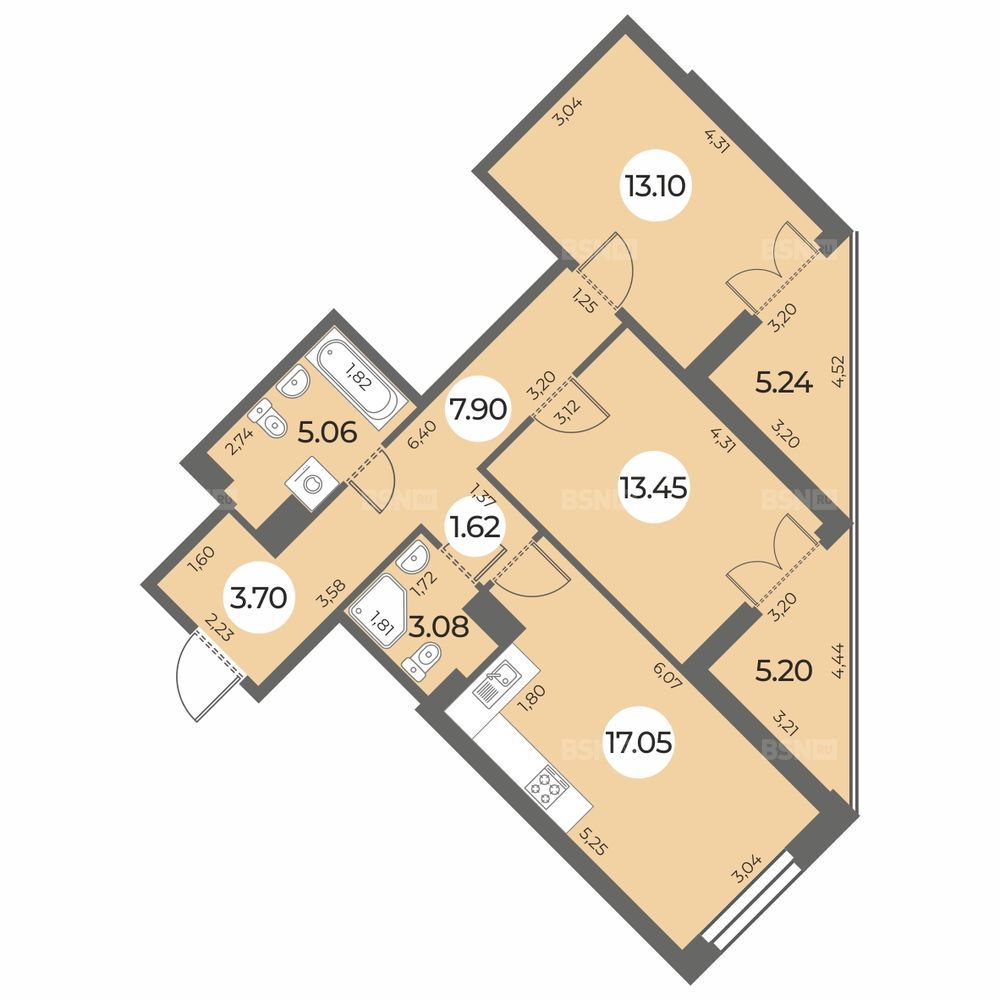 Площадь70.18 м2