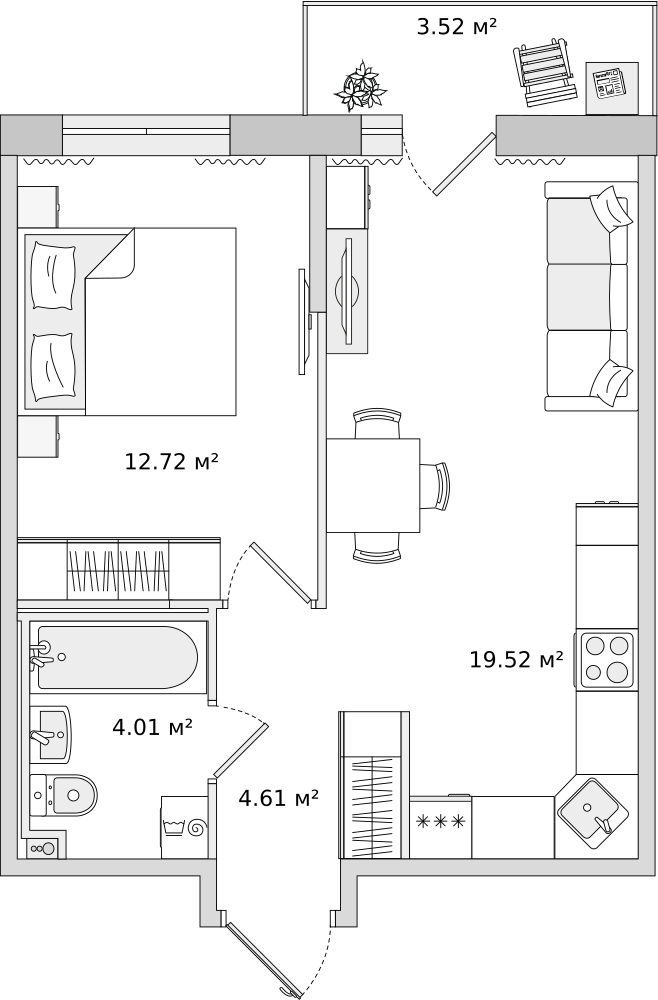Жилая12.7 м2