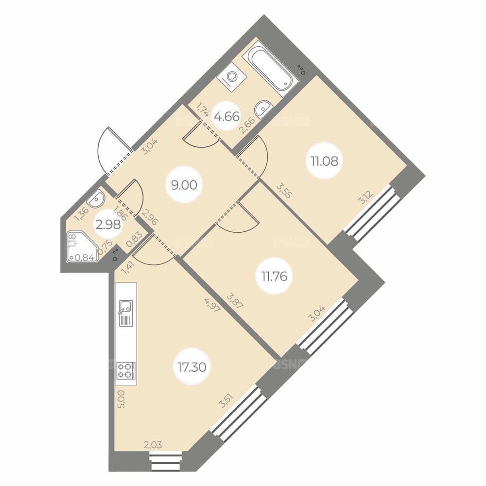 Площадь56.78 м2