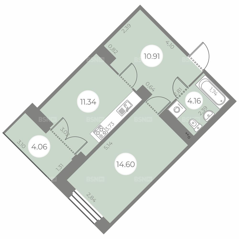 Площадь43.04 м2