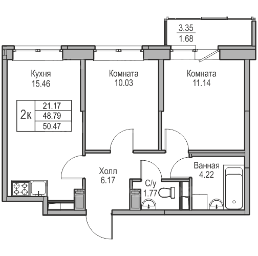 Площадь50.47 м2