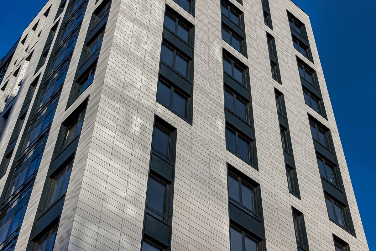Панорамные окна с алюминиевым профилем в каждой квартире. Рядом с каждым окном есть специальный клапан для проветривания (КИВ)