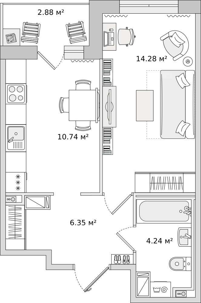 Жилая14.4 м2