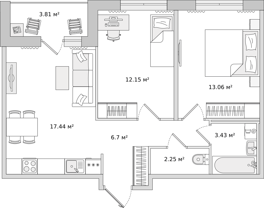 Площадь58.84 м2