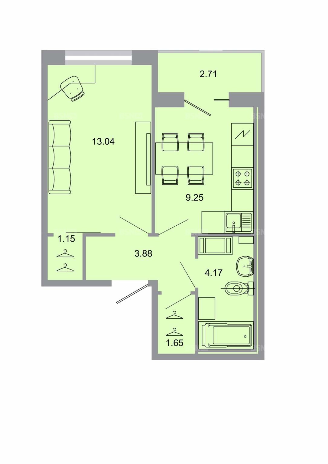 Площадь33.3 м2