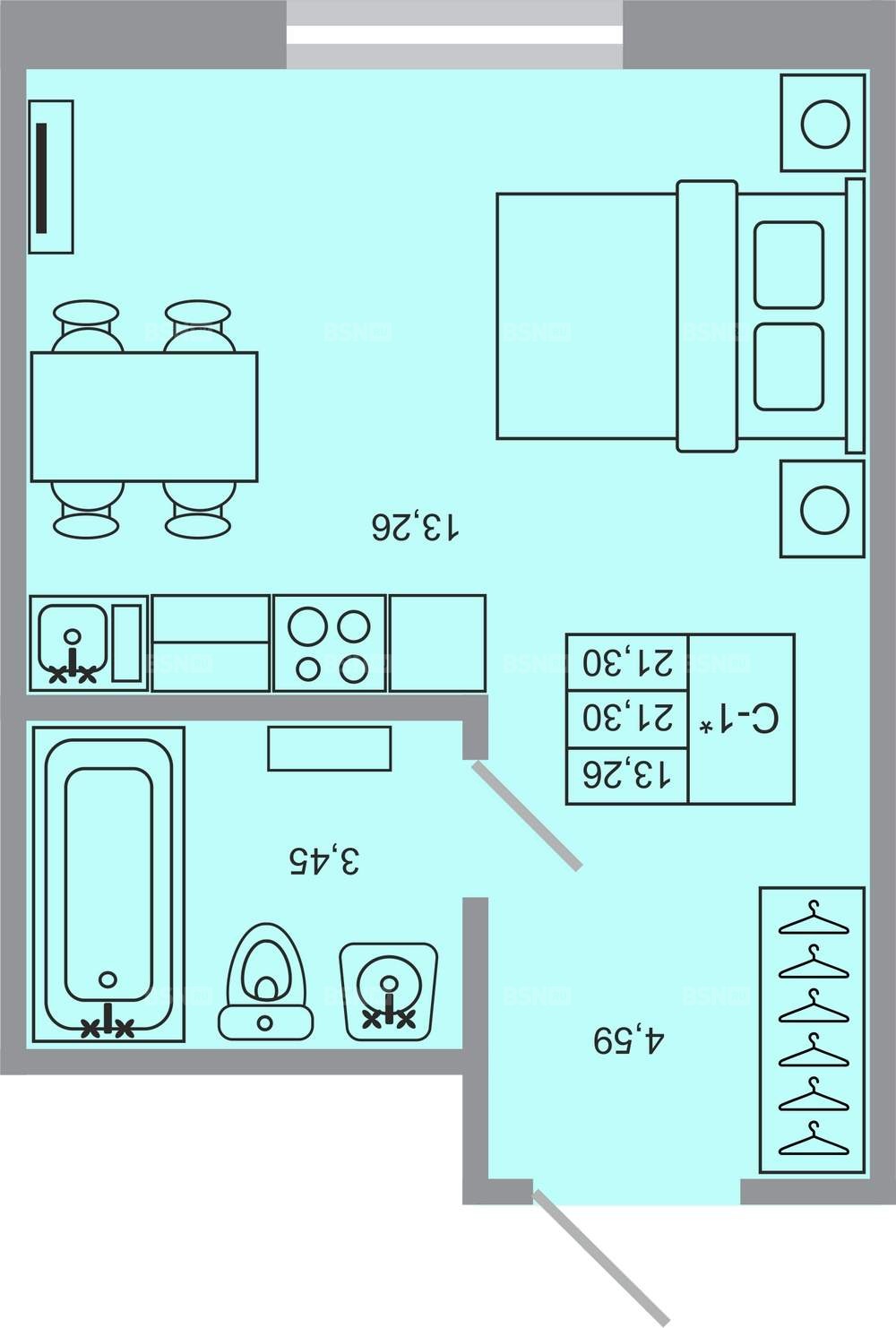 Площадь21.3 м2
