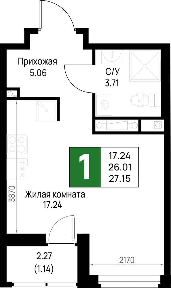 Жилая17.24 м2