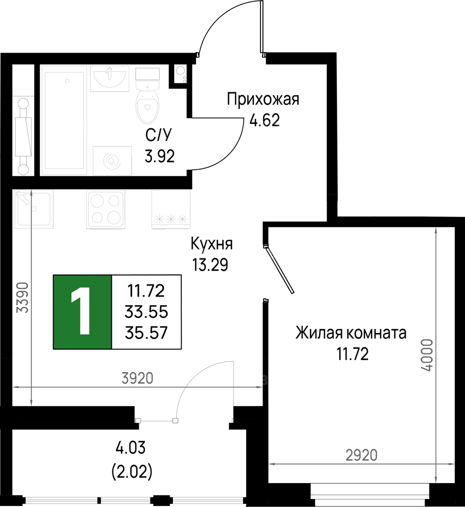 Площадь35.57 м2