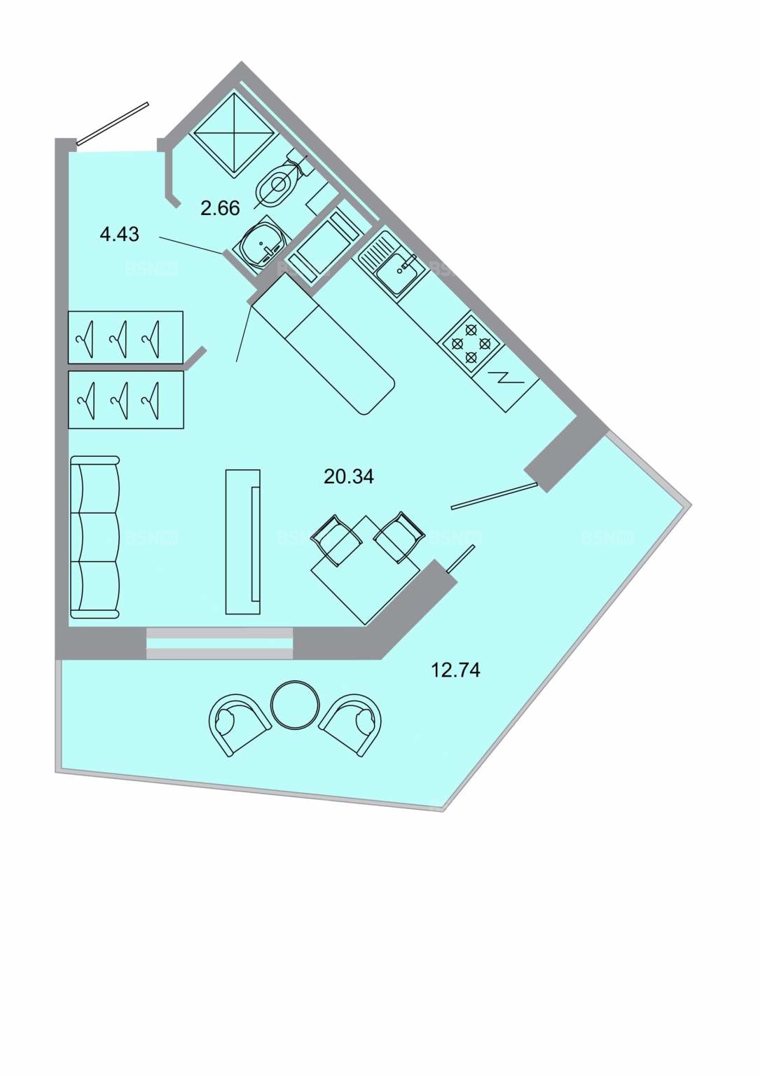 Жилая20.2 м2