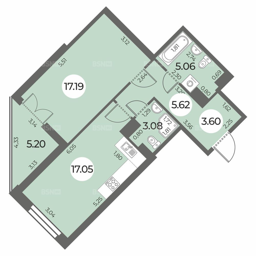 Жилая17.19 м2