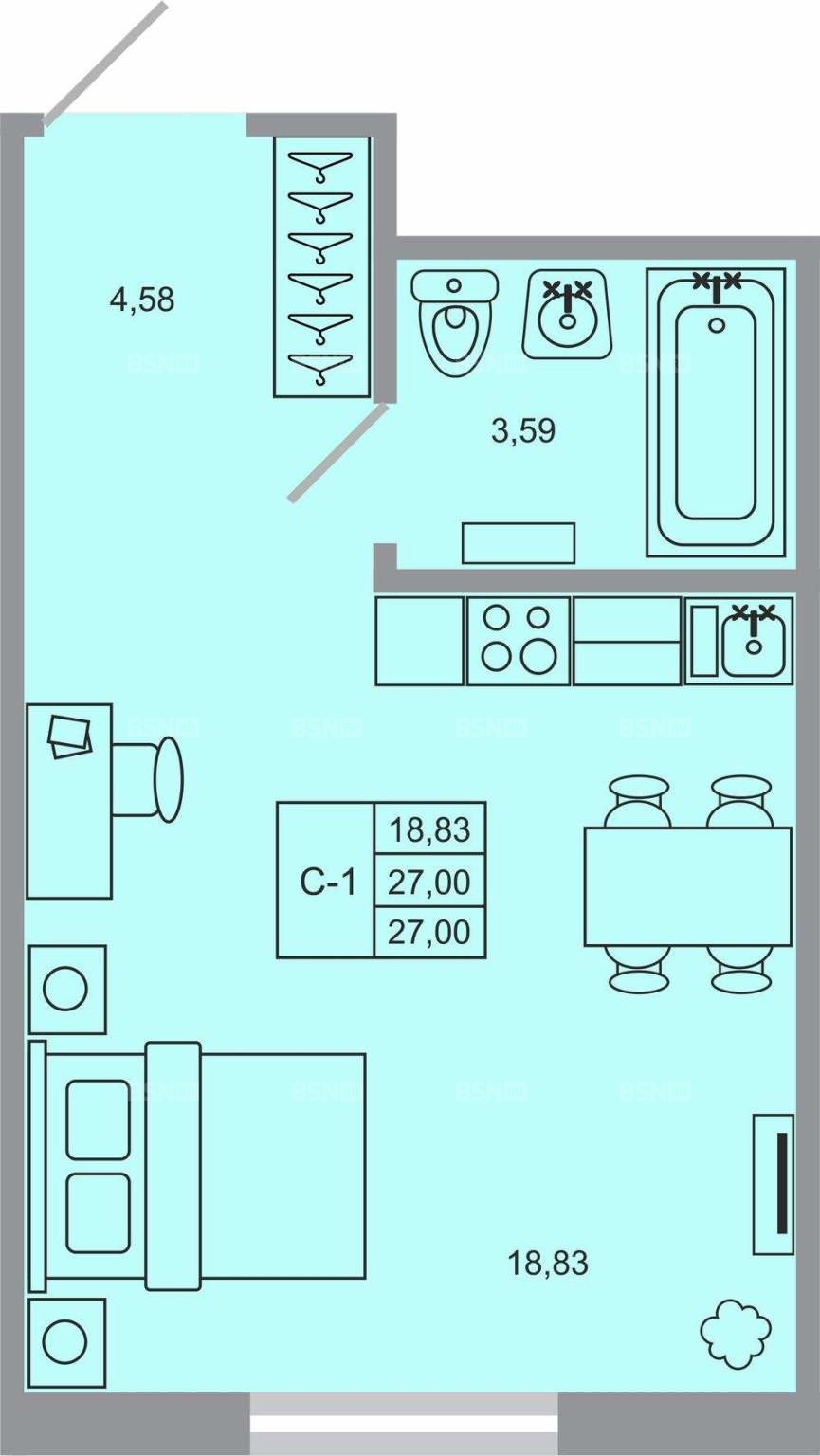 Площадь26.6 м2