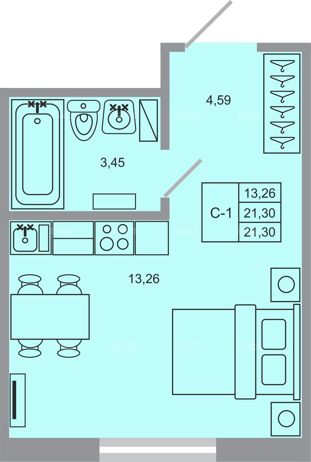 Площадь21.3 м2