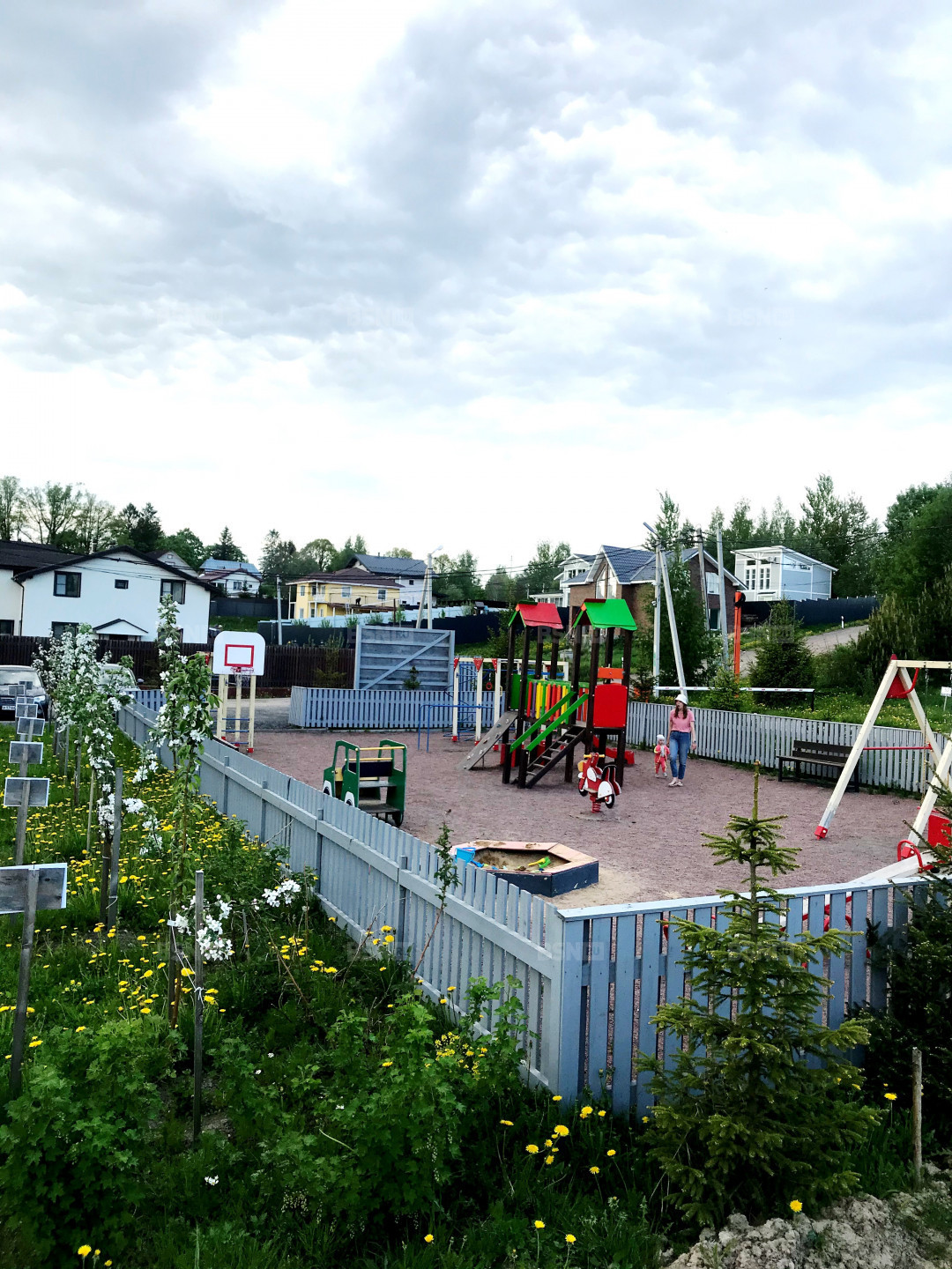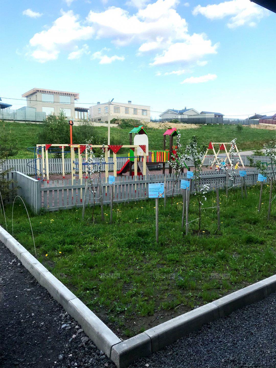 Активная частная застройка массива, однородное соседство, при въезде в массив установлен шлагбаум, въезд по брелоку.