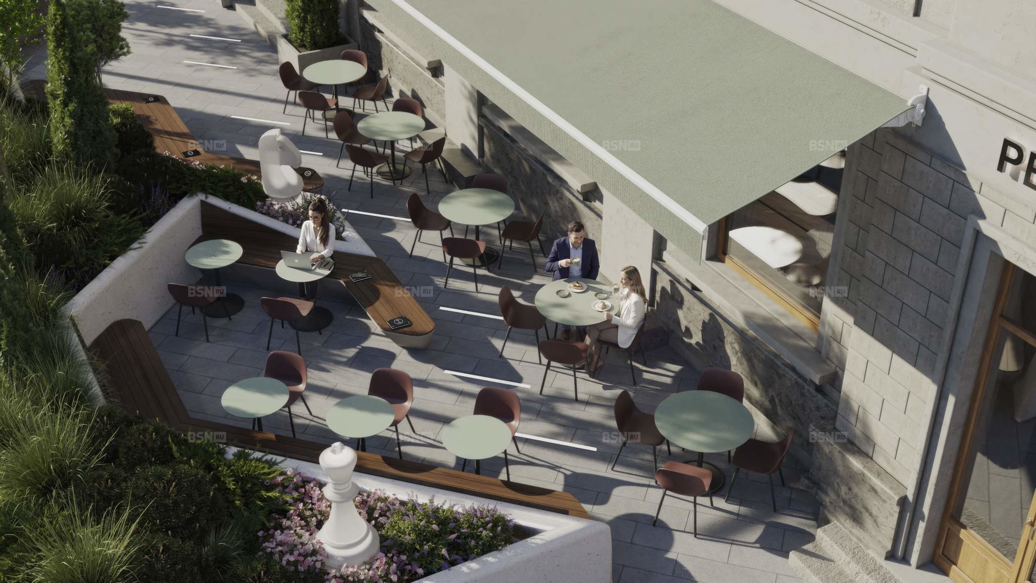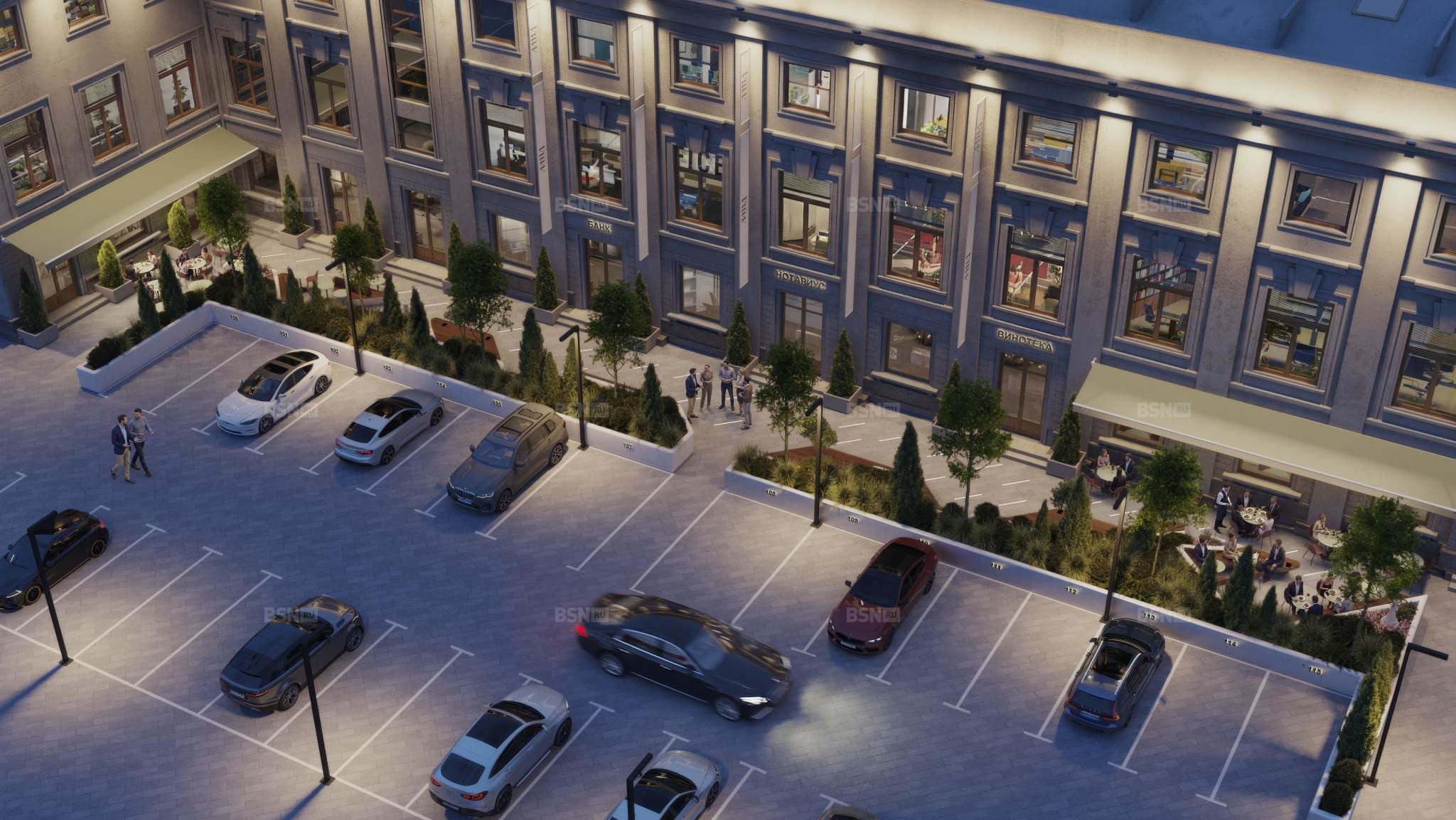 - ресторан, банк, кофейня, помещения сферы услуг и другая инфраструктура на 1-м этаже