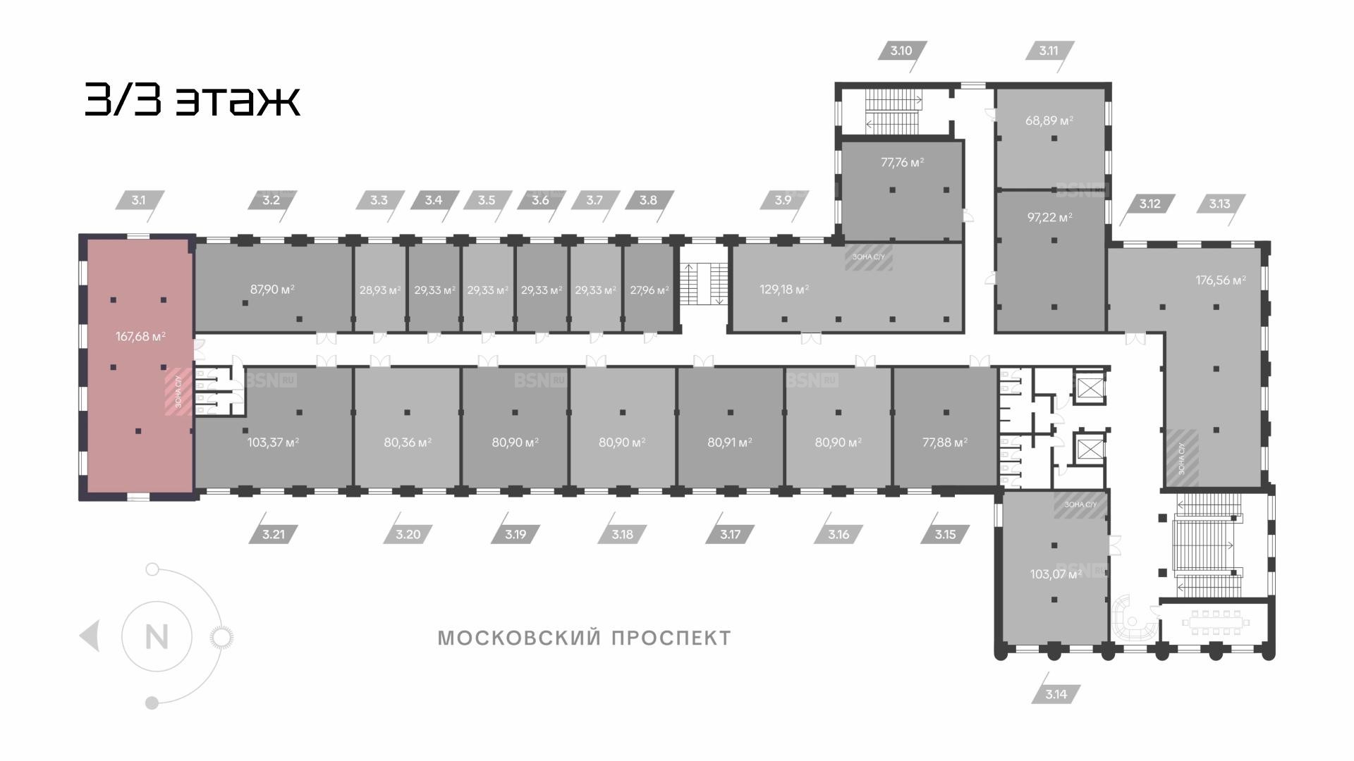 В продаже офис на 3 этаже в премиальном бизнес-центре у Московских ворот!