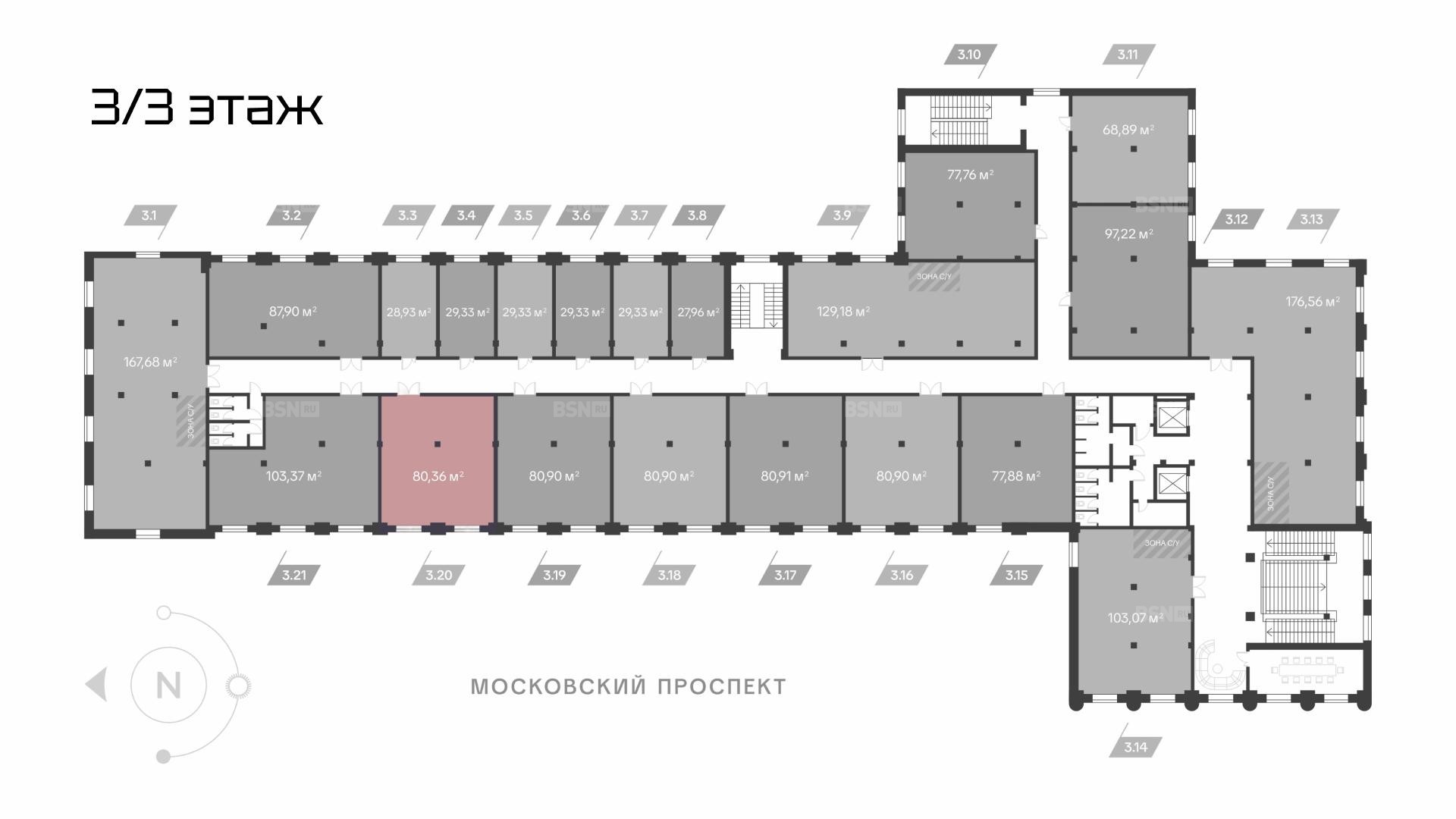 В продаже офис на 3 этаже в премиальном бизнес-центре у Московских ворот!