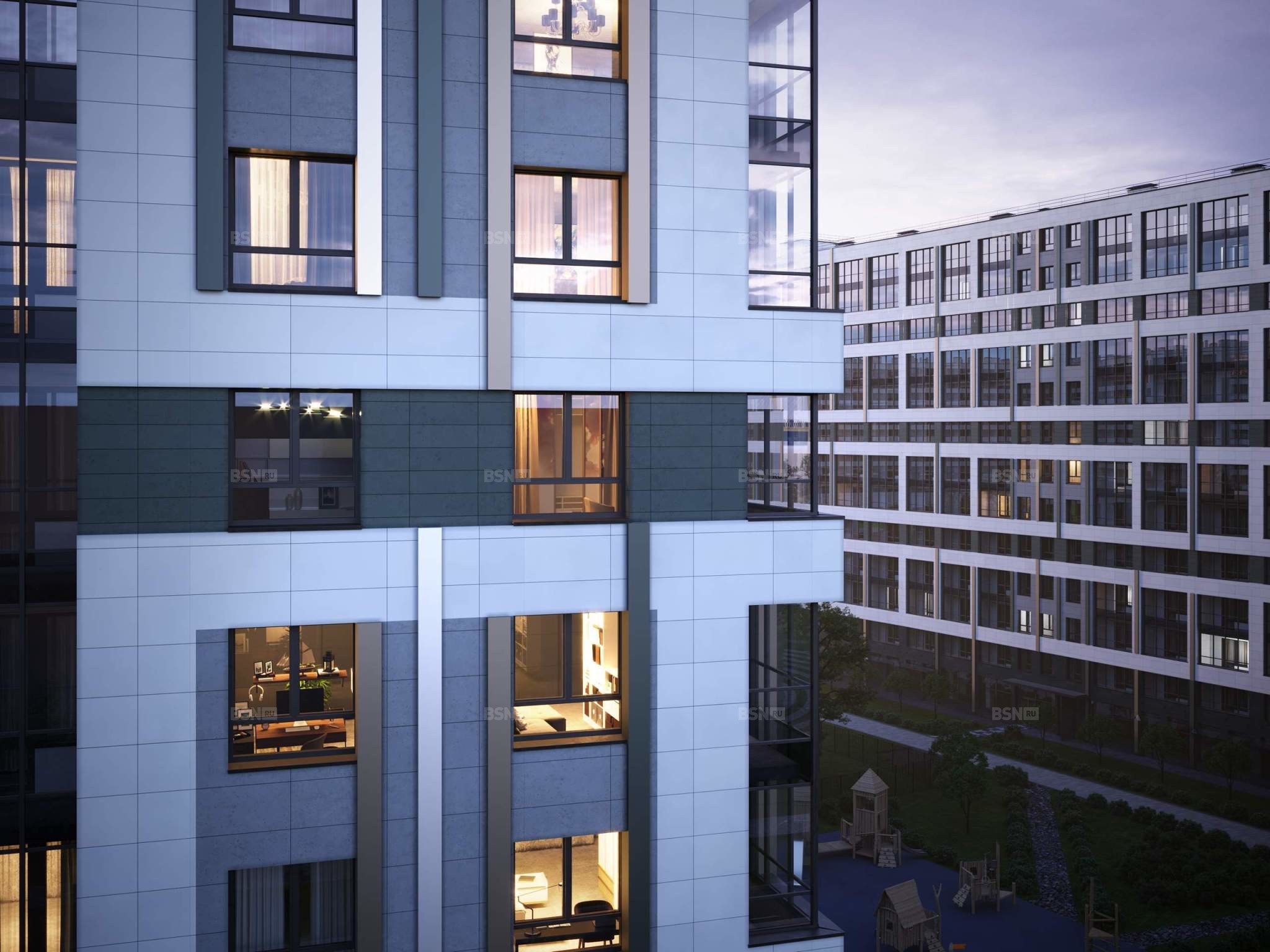 Light-in - в квартирах устанавливаются широкоформатные окна, увеличены на 30%. Высота подоконников на уровне 60 см от пола.