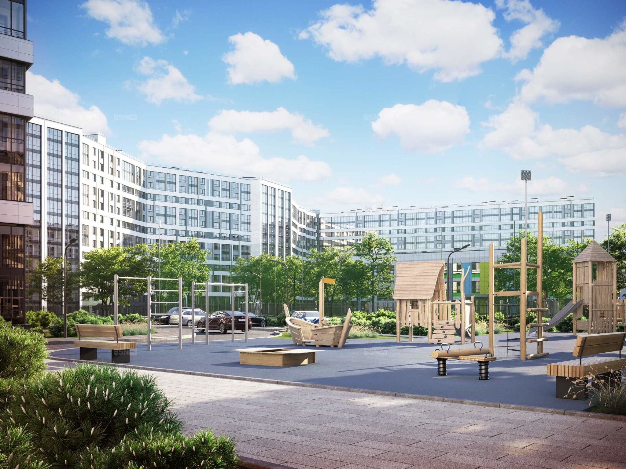 залива и новая современная инфраструктура в пешей доступности. Проект включает в себя пять тринадцатиэтажных «умных» домов в едином архитектурном стиле. Насыщенная социальная