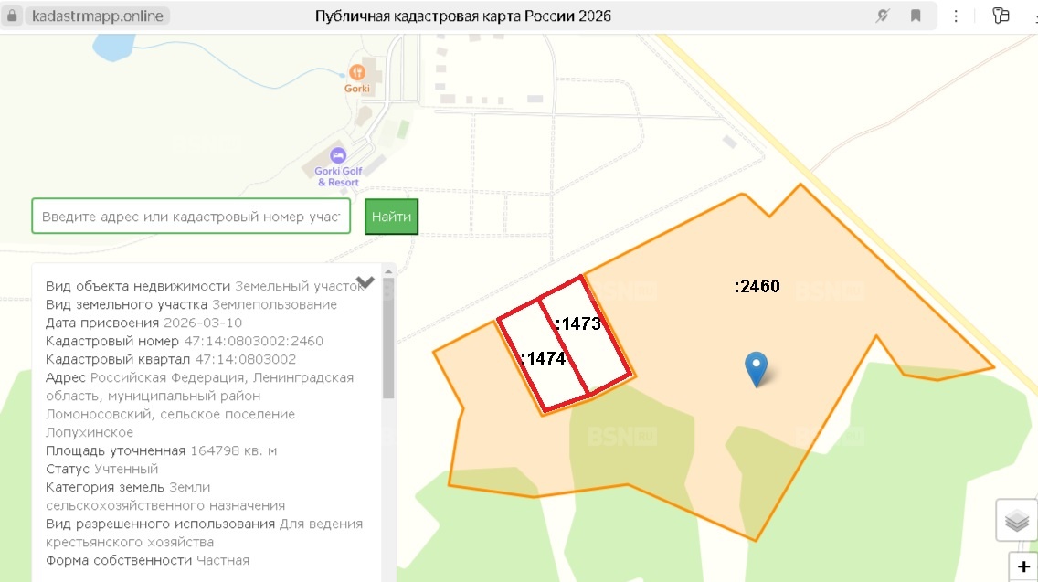 Местоположение: Участки расположены в 2-х километрах южнее д. Горки Ломоносовского района, с южной стороны граничат с лесным массивом, с востока граничат с асфальтированной автодорогой «Лопухинка – Каськово», с севера с территорией гольф клуба «Горки» имеющего развитую инфраструктуру спортивно-оздоровительного направления и отдыха (клубный дом с двухэтажным панорамным рестораном, отель с бассейном, спортивный центр и т.д.).