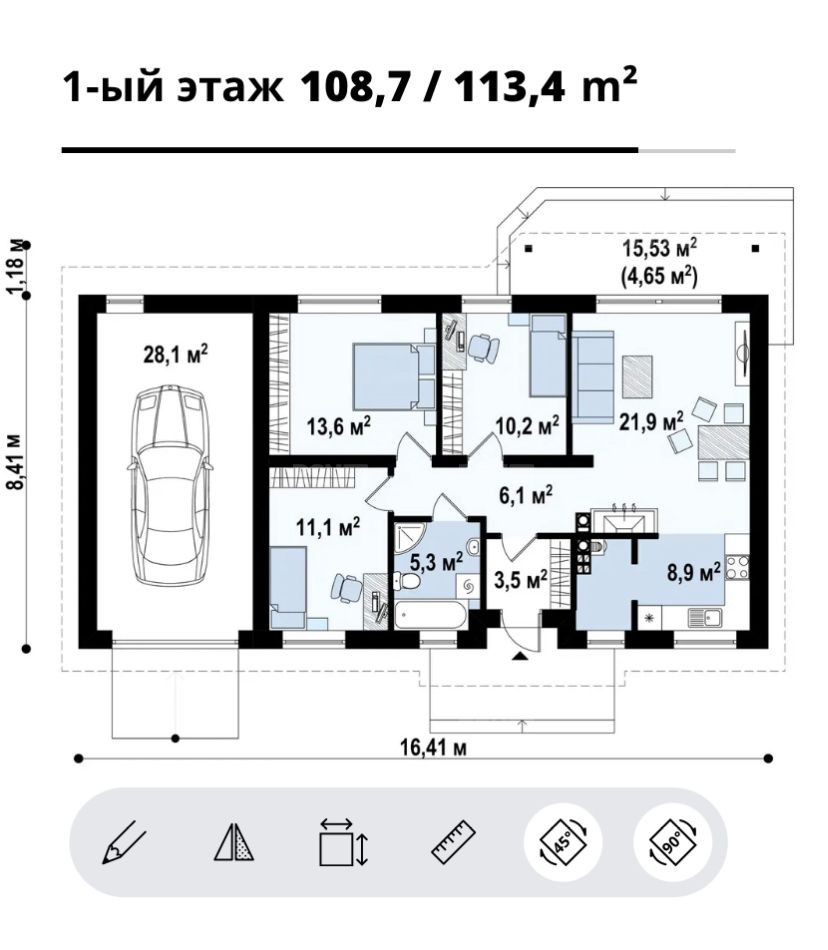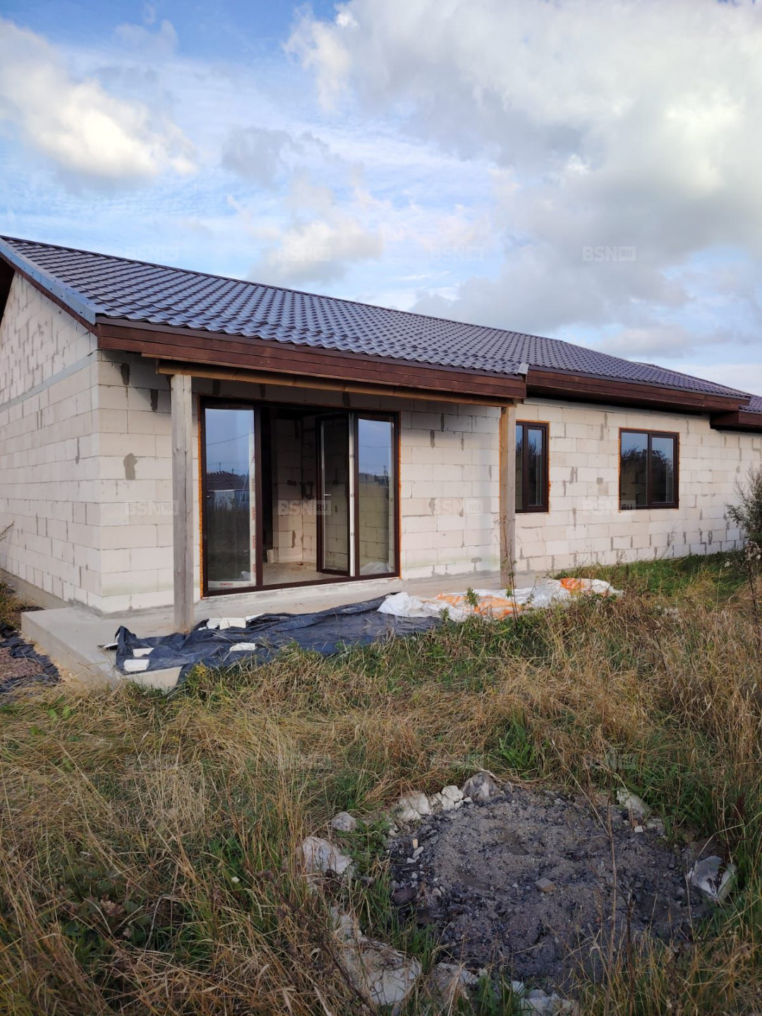Предлагается шикарный одноэтажный дом с 3мя комнатами + большой гостевой совмещенной с кухней . Дом из газобетона , с панорамным выходом во двор участка.