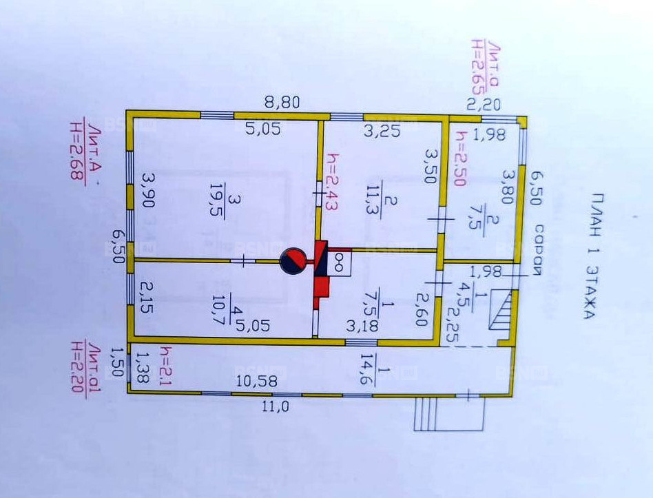 Первый этаж: три изолированные комнаты - 11,3+19,5+10,7 кв.м, куxня - 7,5 кв.м, коридор – 4,5 кв.м, веранда, подвал –сухой и глубокий.
