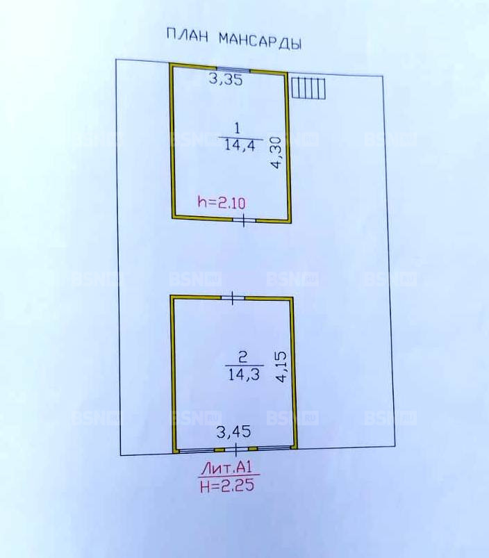 Второй этаж: две комнаты 14,4+14,3 кв.м.