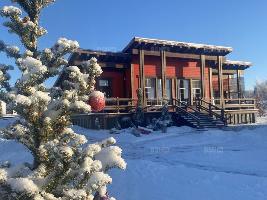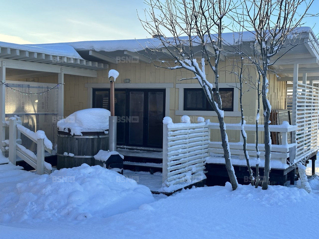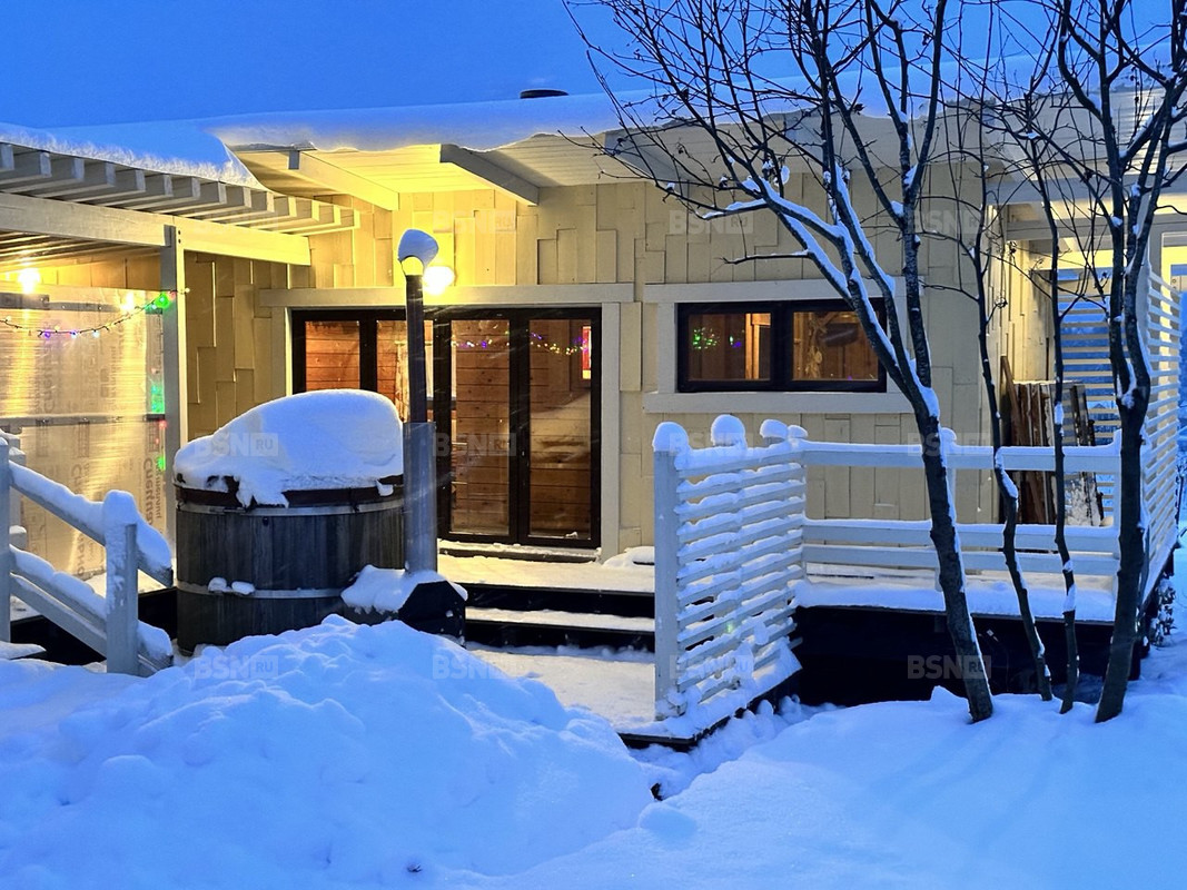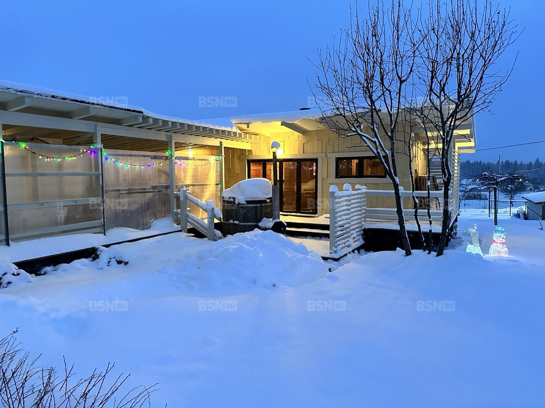 1.Основной дом для круглогодичного проживания 100 кв.м. с кухней-гостиной с камином и 2-мя спальнями, большим санузлом с душевой, каркасный, утеплитель стен 200 мм, утеплитель кровли 300 мм, отопление автономное - газ, открытая терраса.