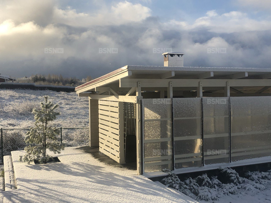 2. Дом для круглогодичного проживания 71 кв.м. - кухня-гостиная с печью, спальня, большой санузел с душевой, погреб, крытая терраса. Блочный (200мм) +утепление 100мм, утепление крыши 300мм. Отопление электричеством + дровяная печь