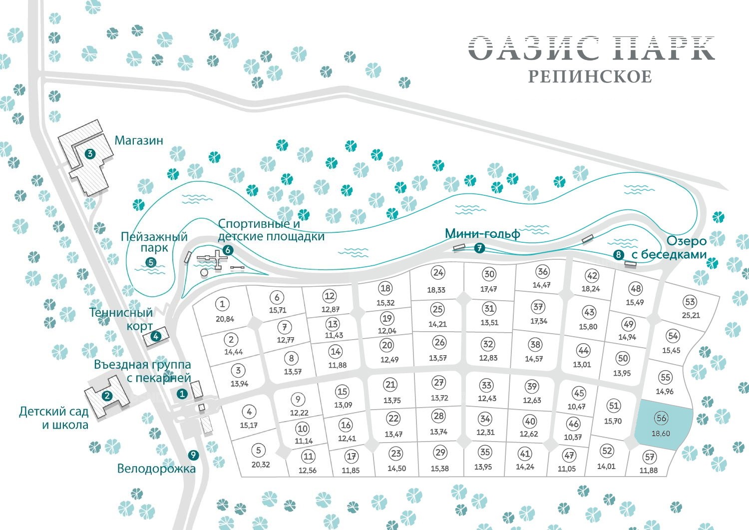 Площадь общественных зон: 5,6 Га