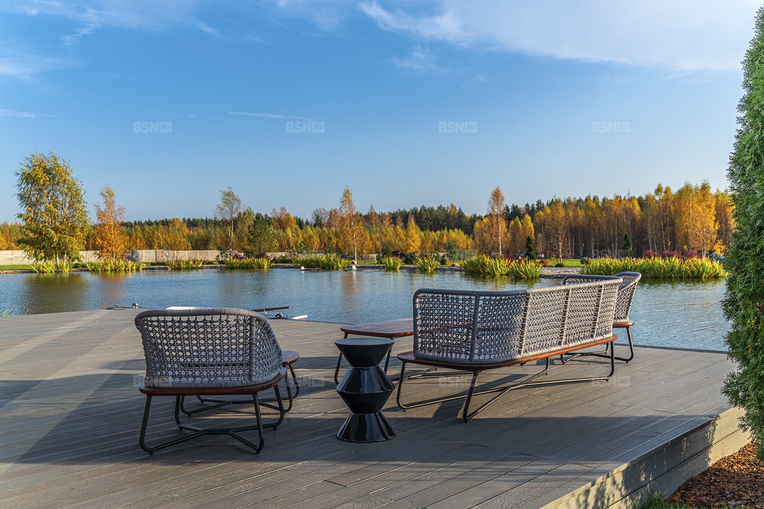 8. Лаундж-зона с террасой и баром на берегу озера