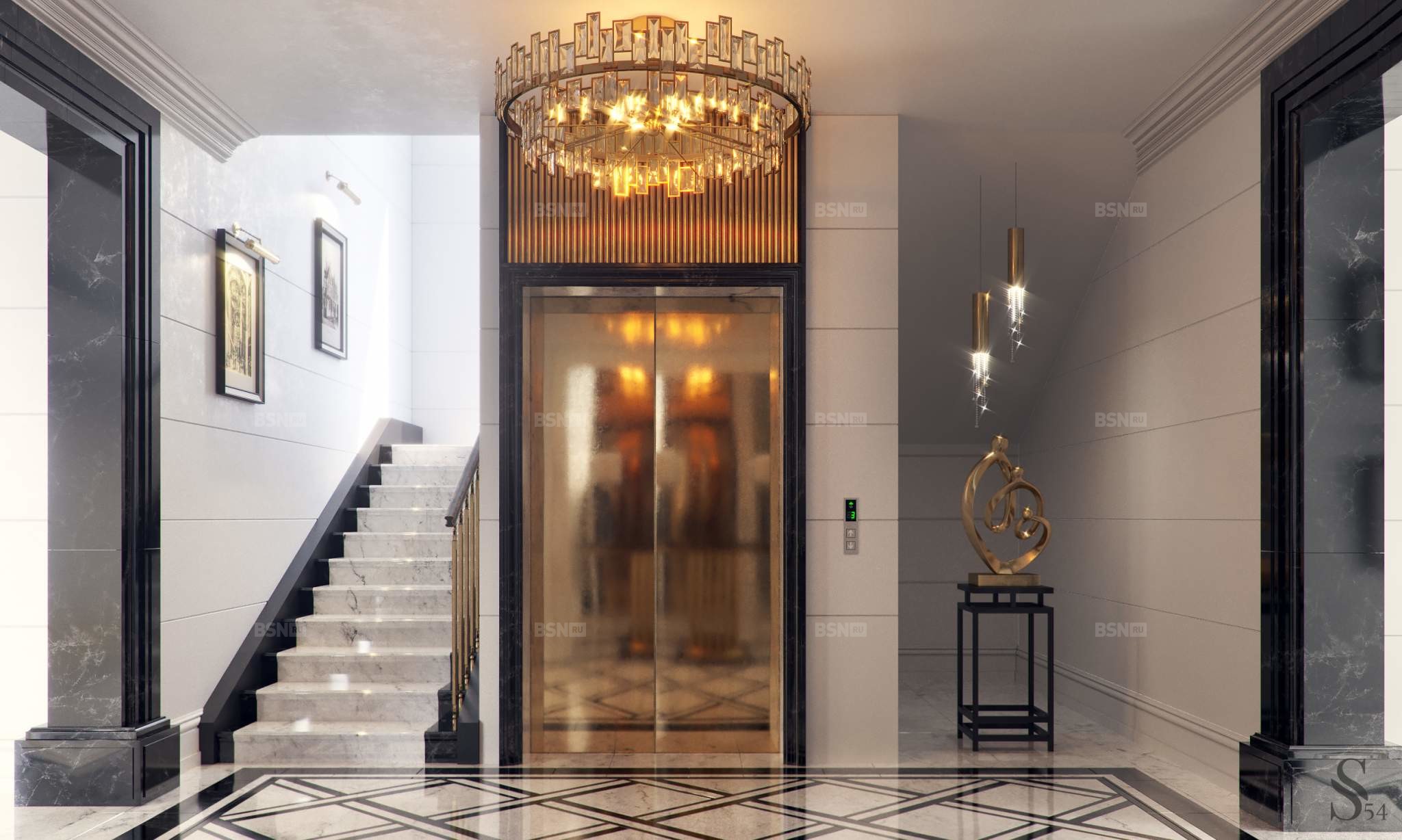 Парадный холл с ресепшен и стойкой портье,