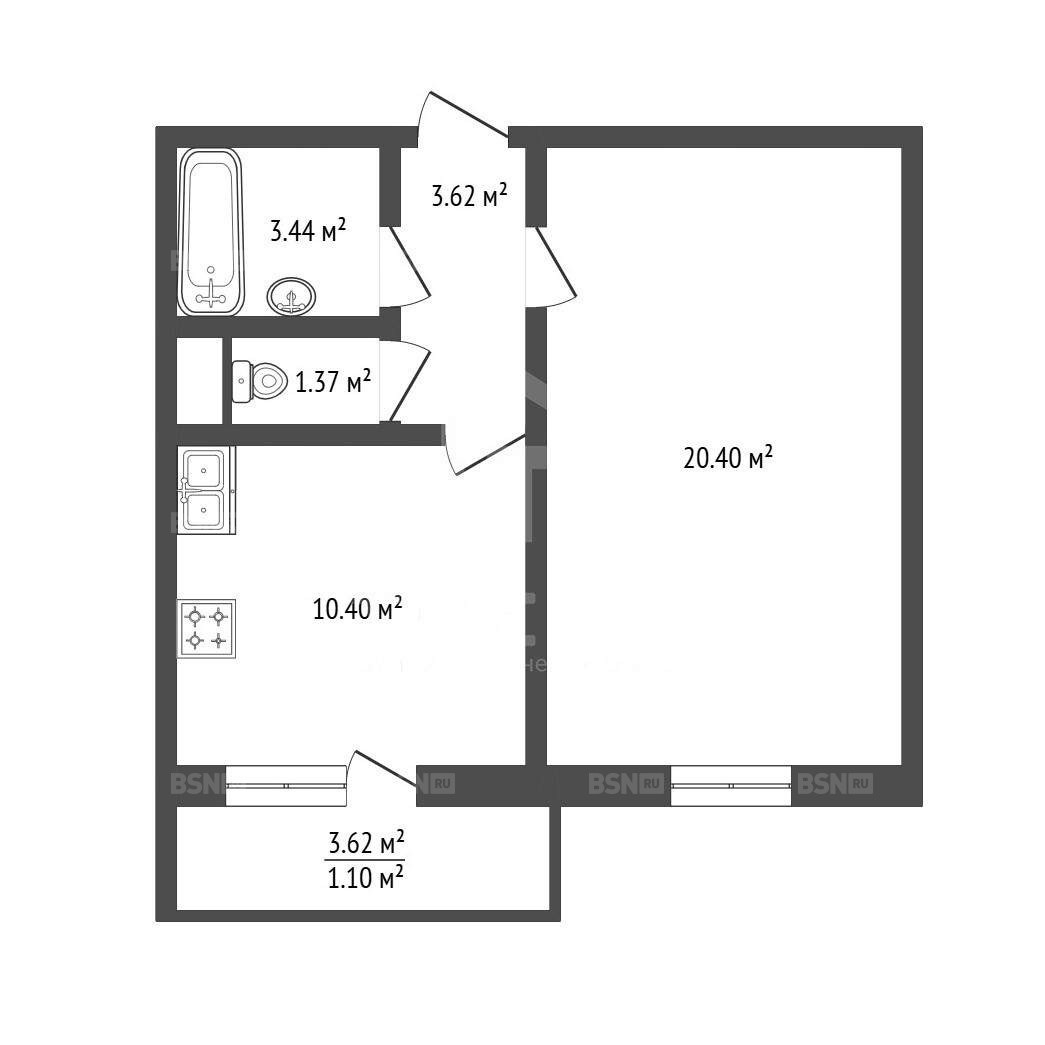 - площадь кухни, от меньшей