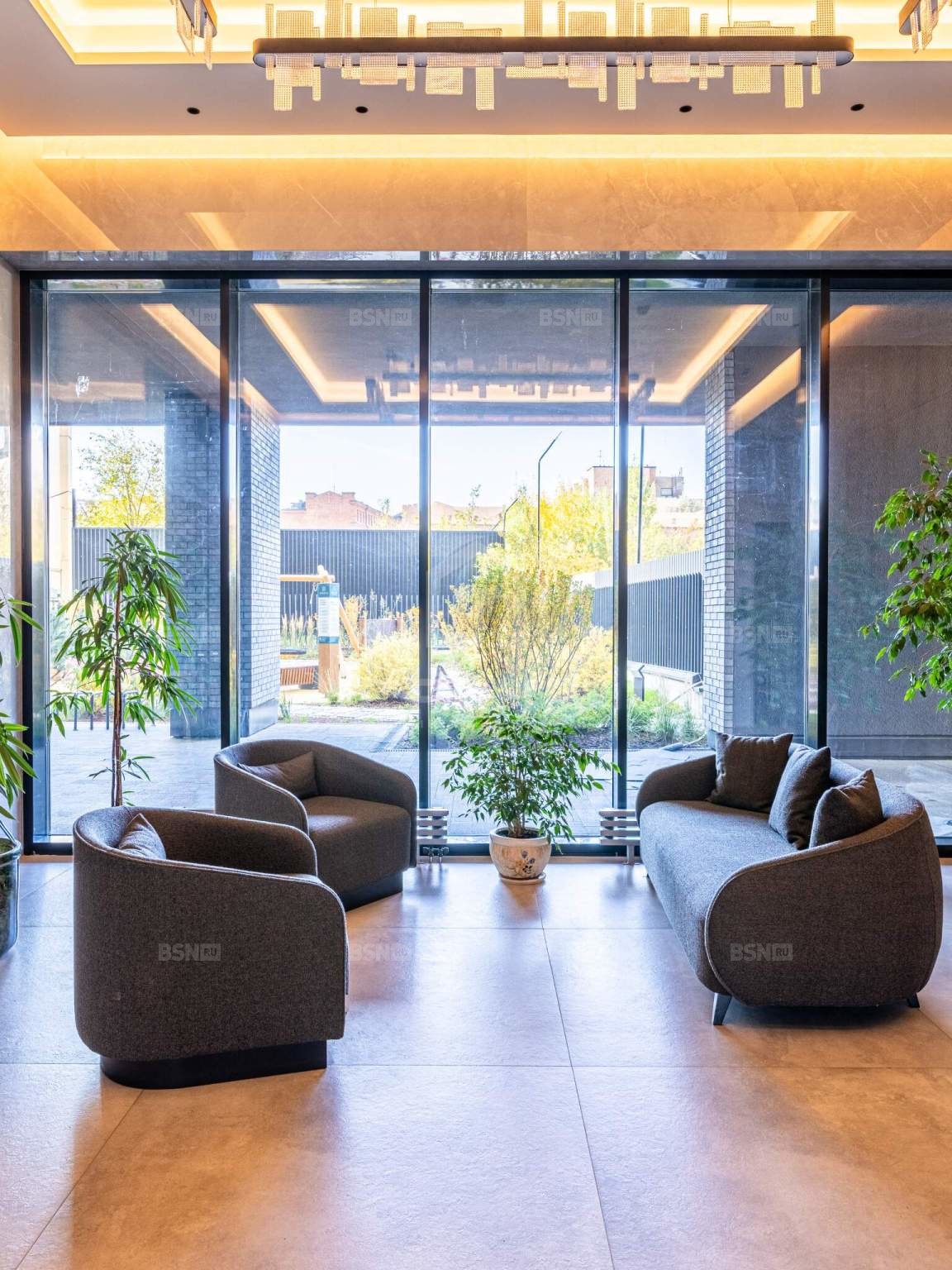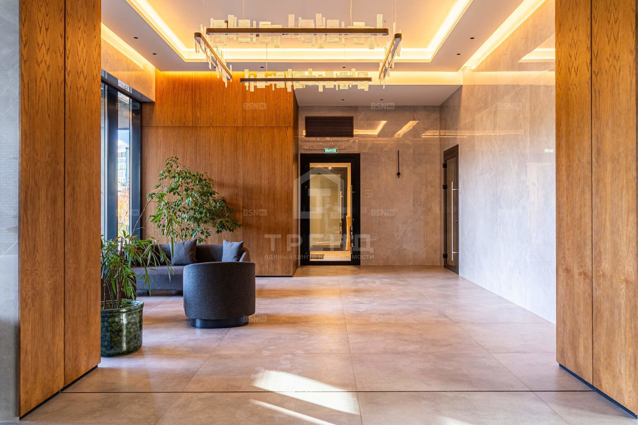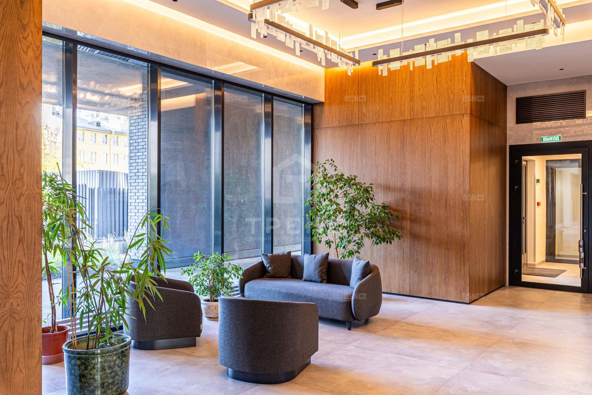 Сам жилой комплекс представляет собой клубный дом высотой до 9 этажей. На первом этаже здания расположены просторный парадный холл и лаундж-зона, помещение охраны и службы консьерж-сервиса с диспетчерской, а также колясочная с клининговым блоком, где удобно мыть колеса и лапы домашних питомцев. Оформление вестибюля центральной входной группы выполнено из экологичных материалов. В основе их сочетания лежит гармония природной цветовой гаммы и различие текстур натурального камня, дерева и металлической глади.