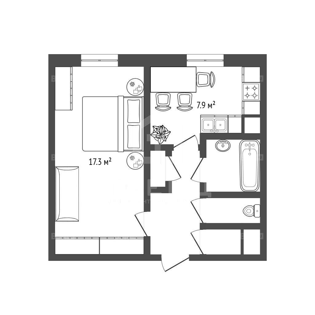 - Жилая площадь: 17,3 м