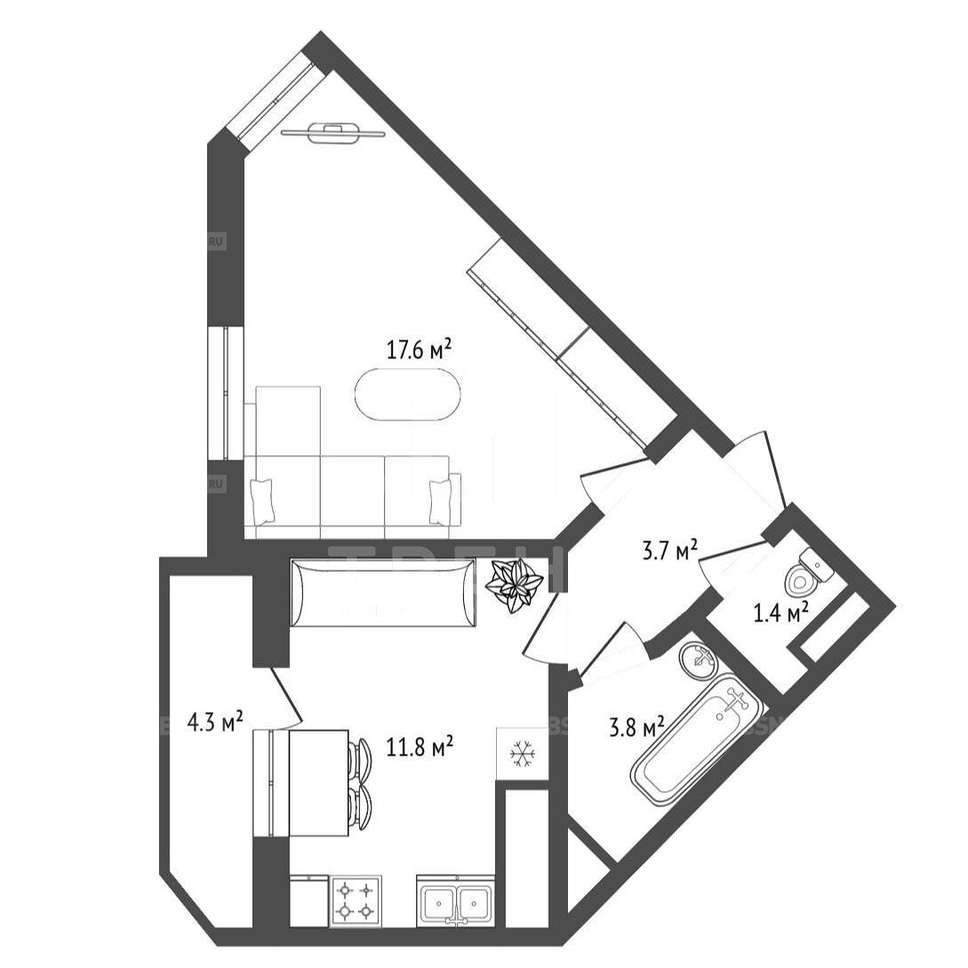 Площадь38.3 м2