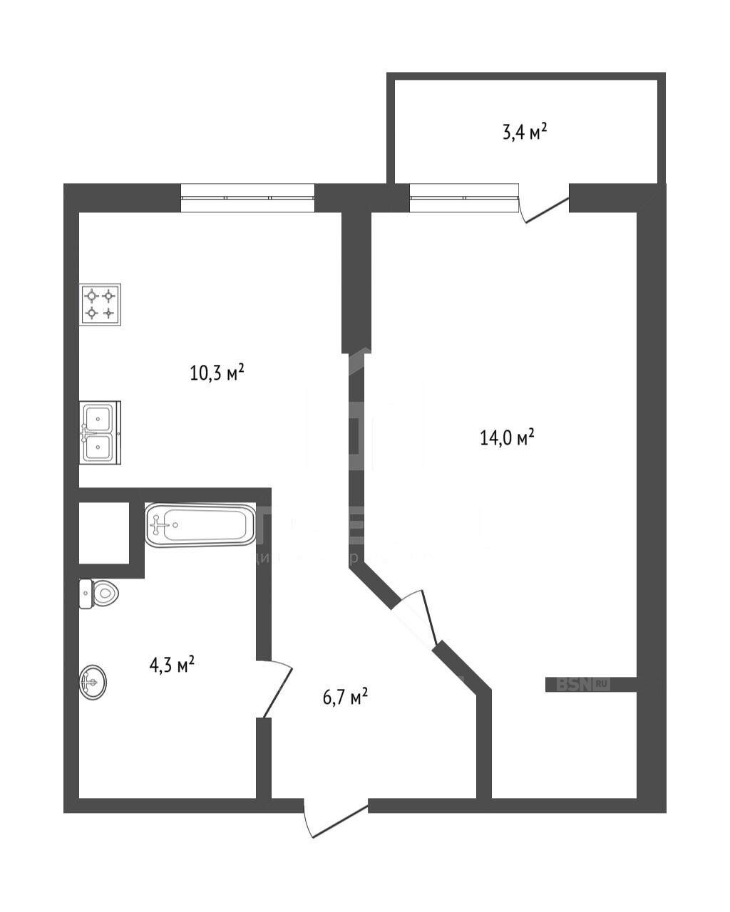 Общая площадь квартиры составляет 36,6 кв. м, из которых 14 кв. м - жилая площадь. Квартира имеет удобную планировку, позволяющую эффективно использовать пространство. Жилая комната изолирована, что создаёт дополнительное удобство. Кухня площадью 10,3 кв. м станет местом для кулинарных экспериментов и семейных ужинов.
