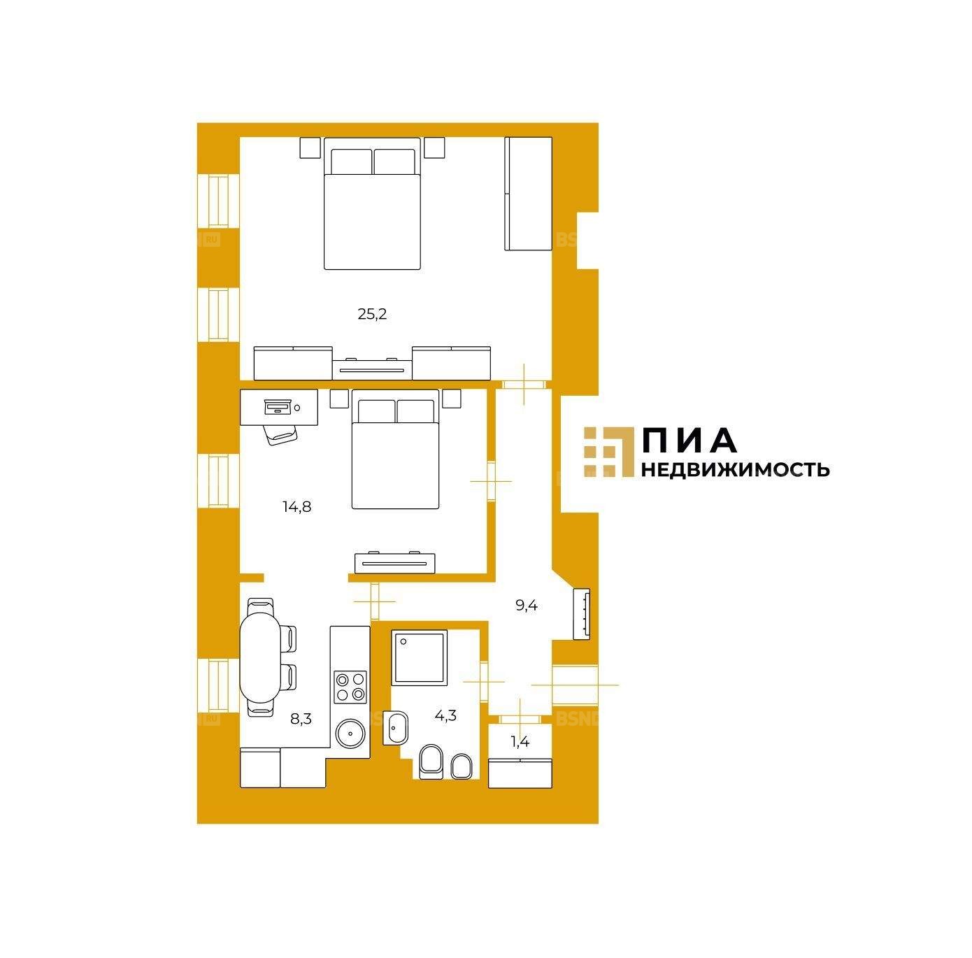 Площадь63.4 м2