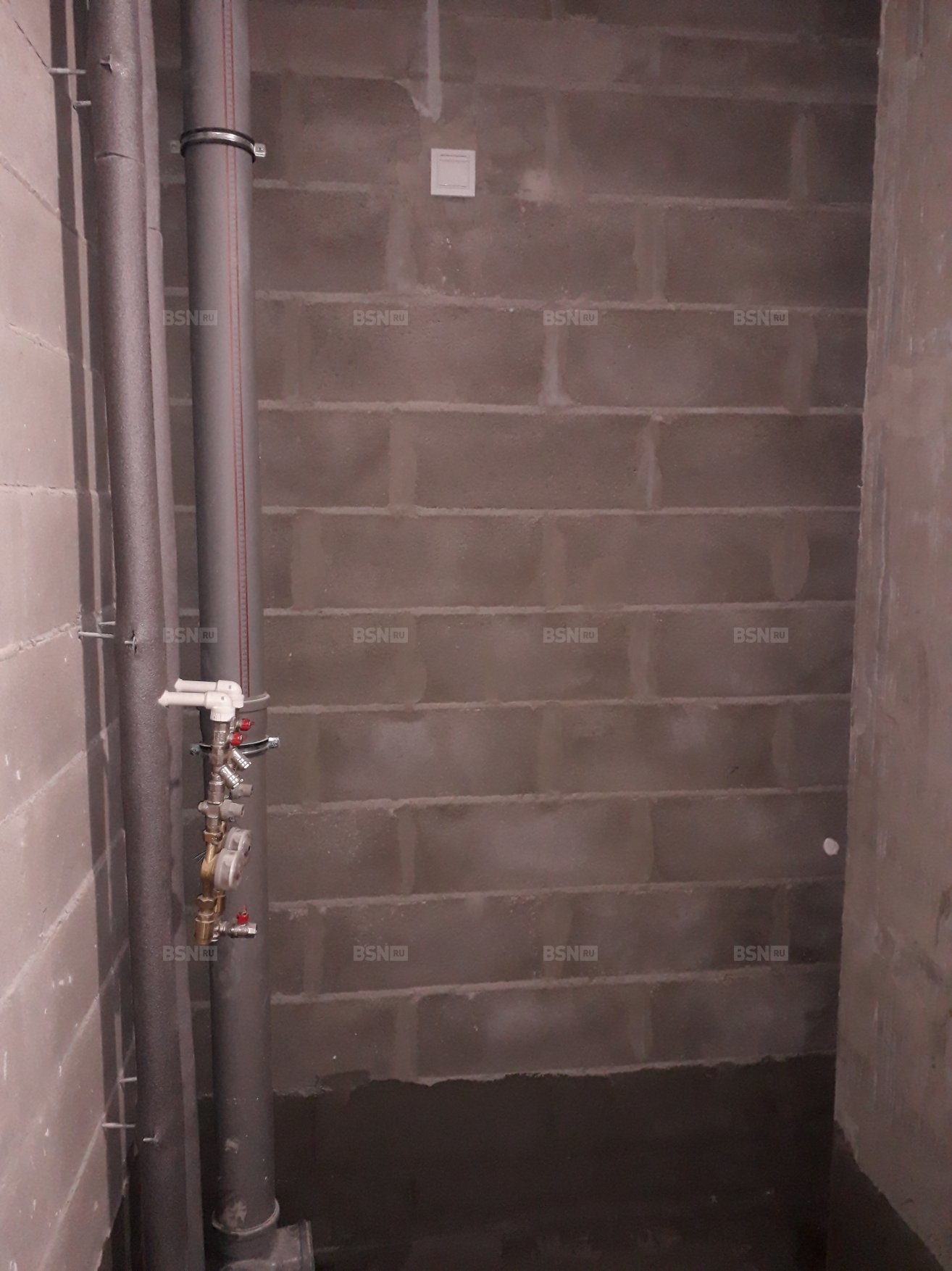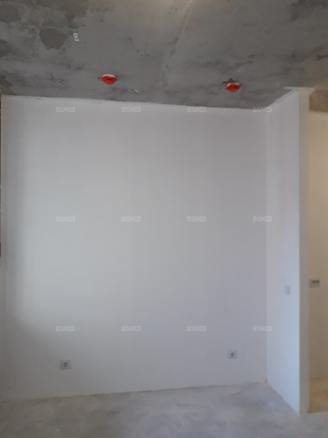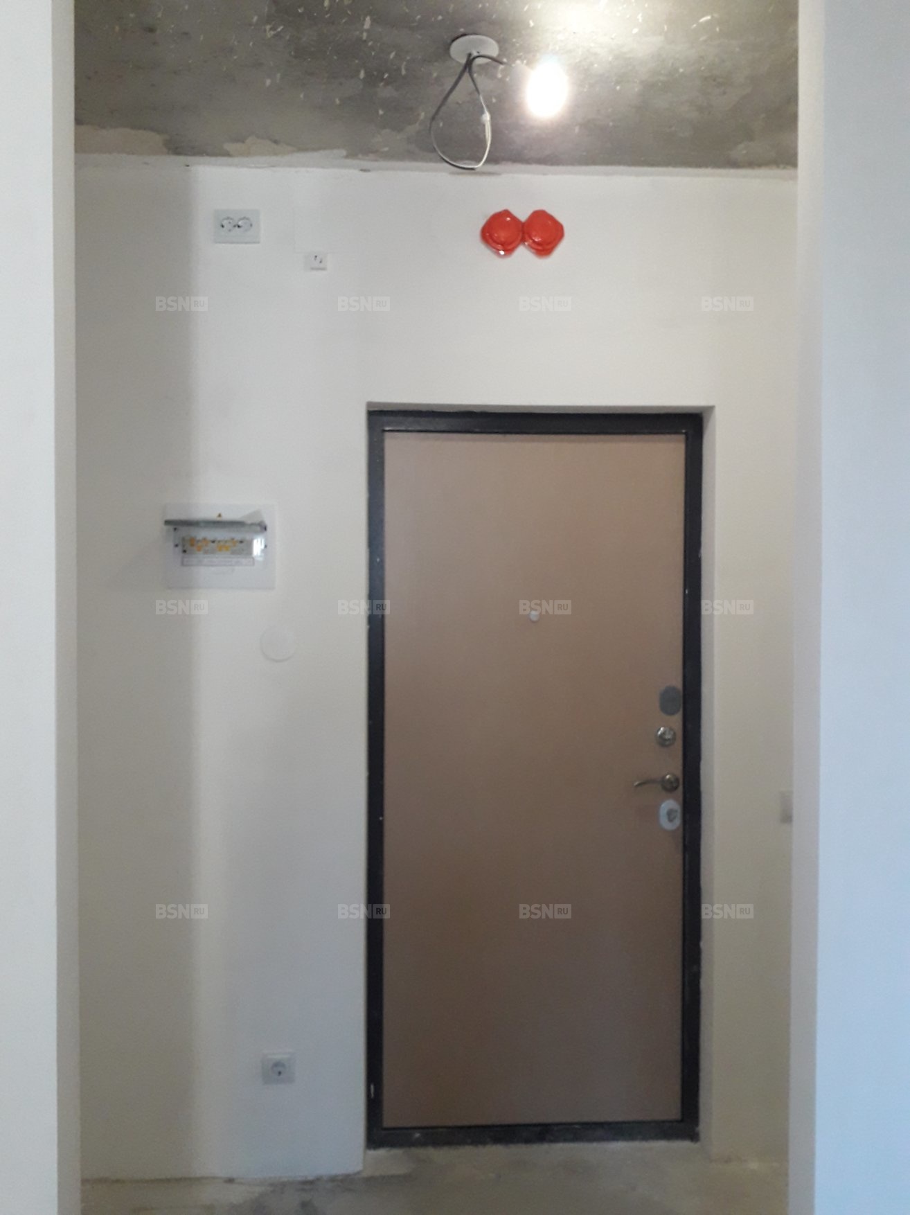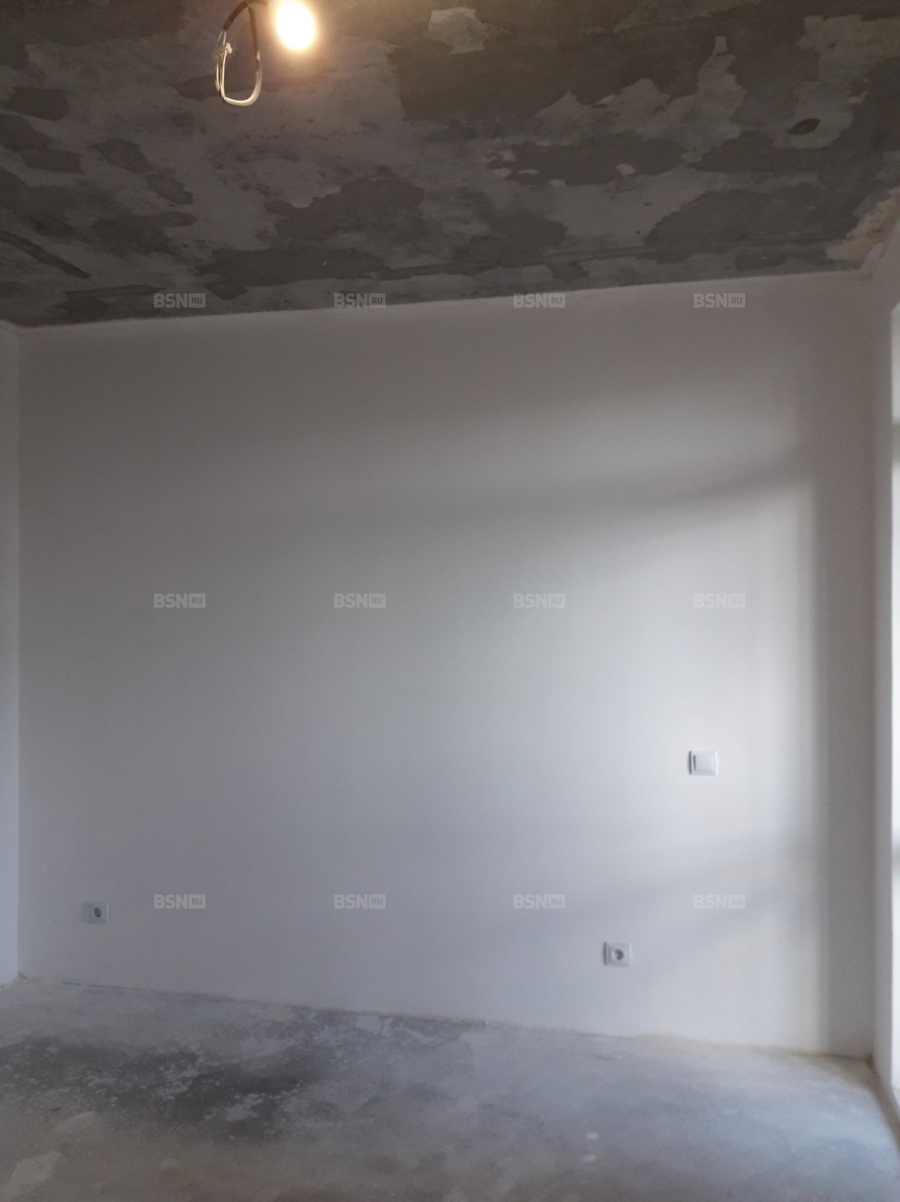 Предчистовая отделка - белый короб. Электрика проведена, установлены розетки, счетчики на эл.энергию и воду.