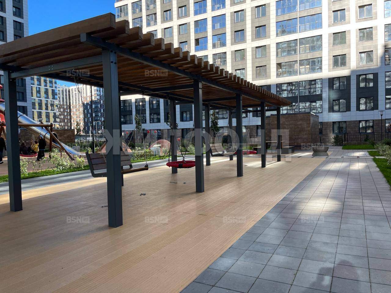 Двор-парк с лужайкой для йоги, качелями, амфитеатром и стадионом, где можно гулять и развиваться всей семьёй!