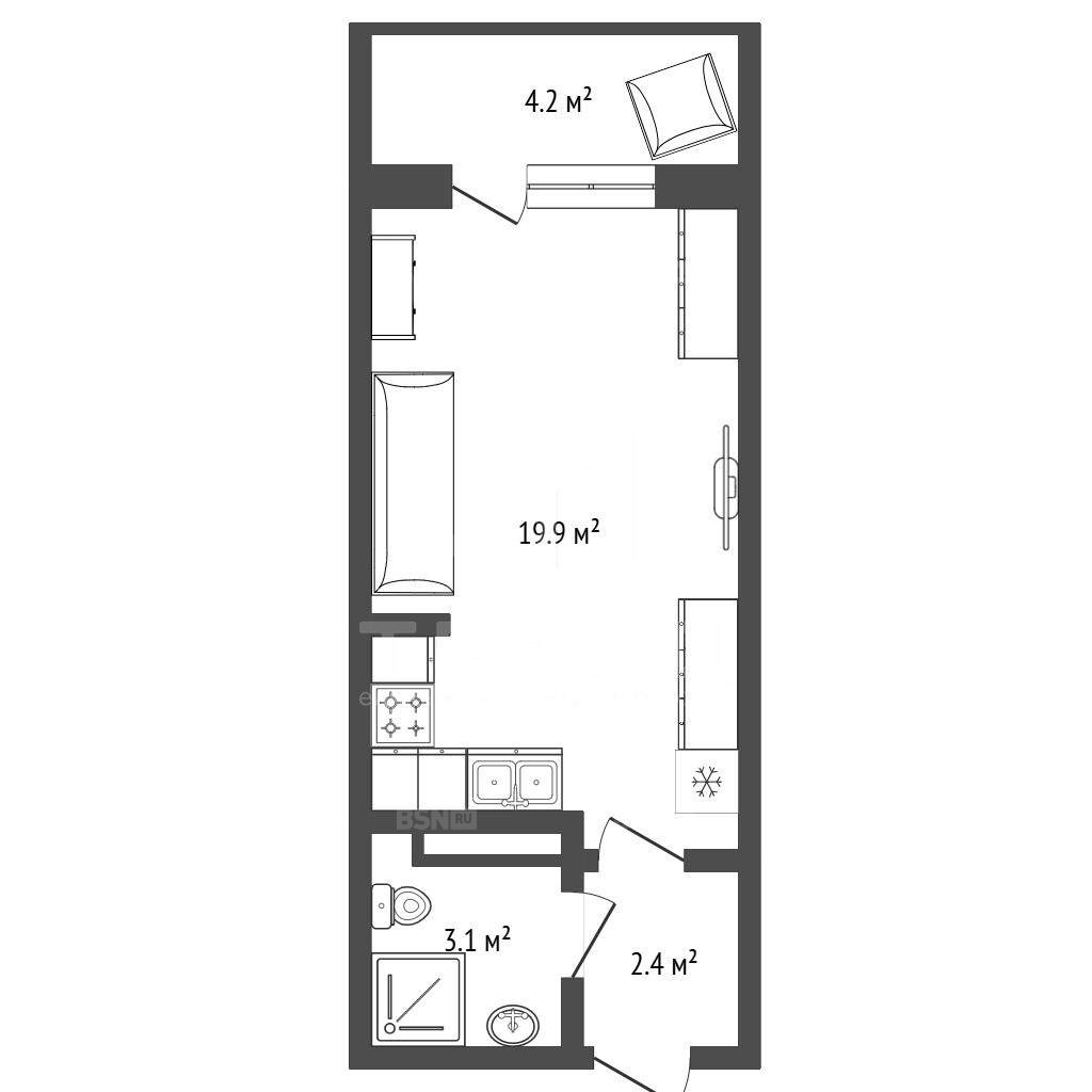 Светлая, просторная студия 25,4 кв. м с высотой потолков 2,8 м - создайте атмосферу уюта и вдохновения.