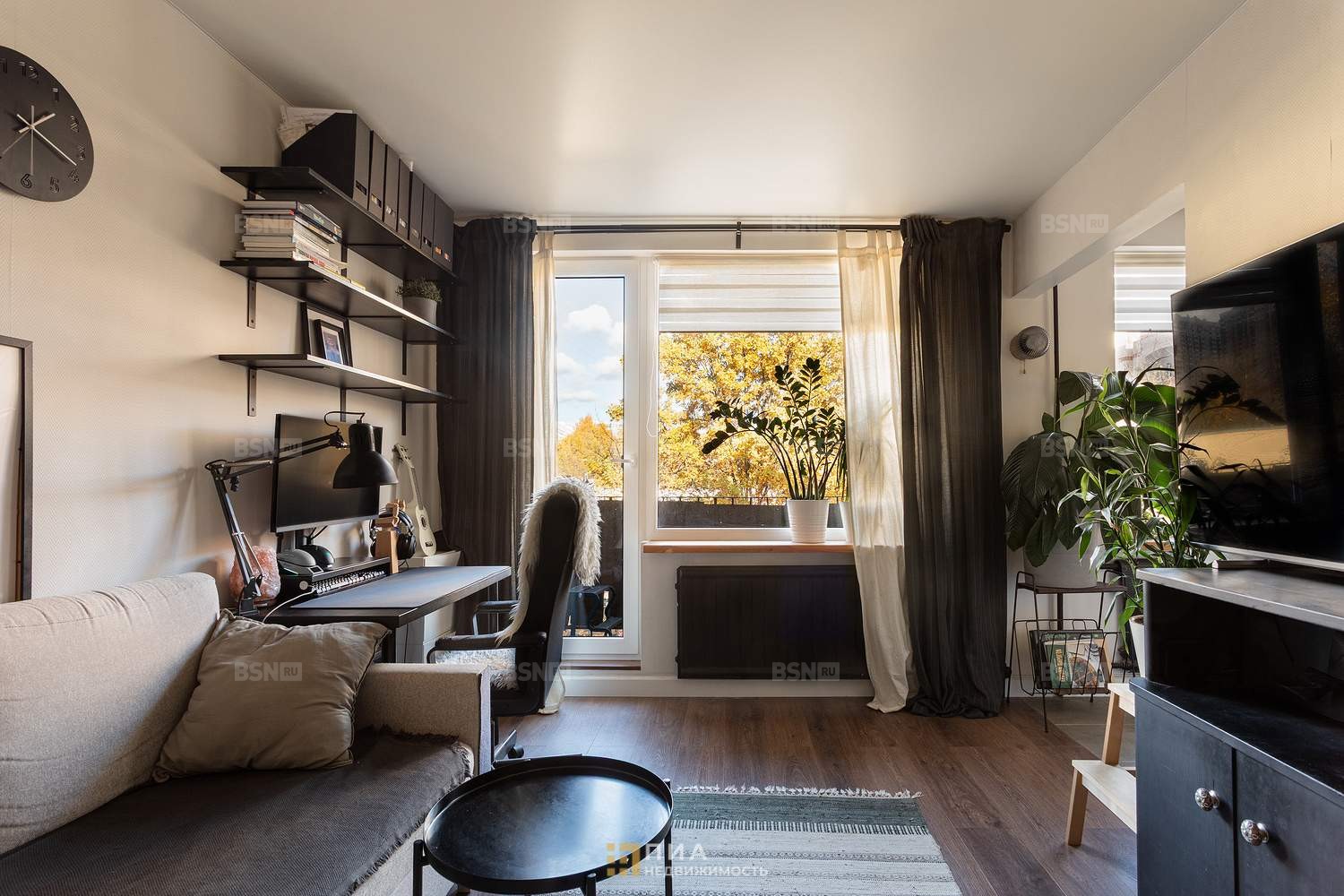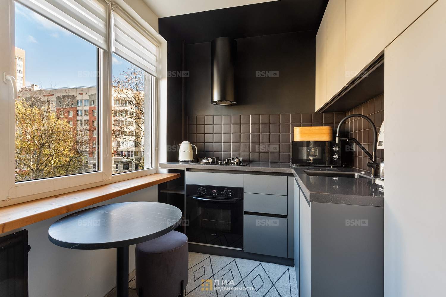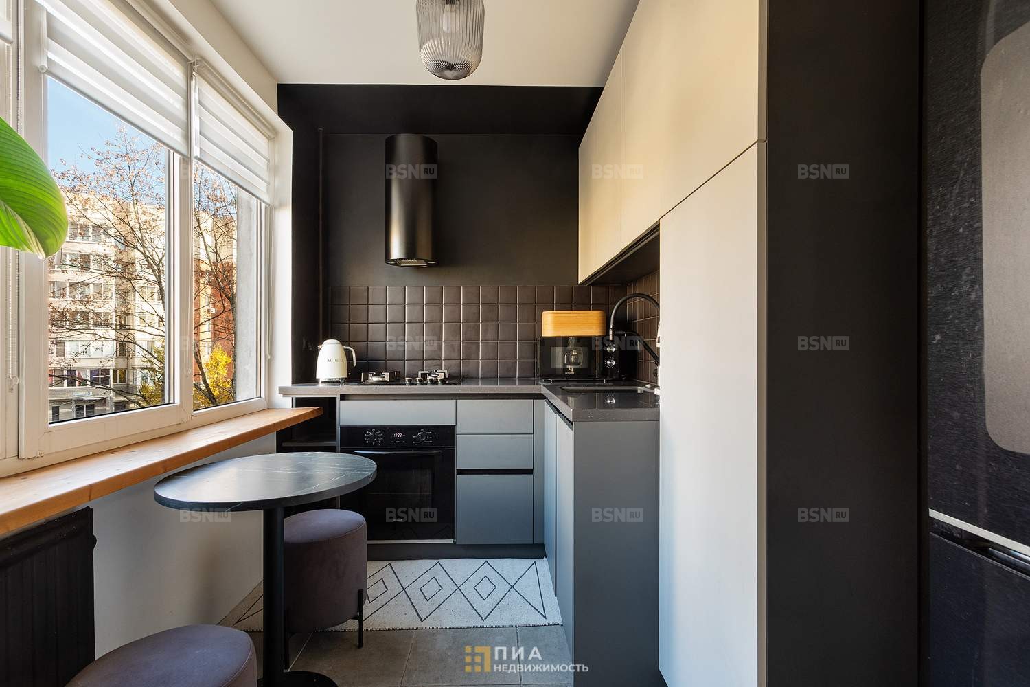 Окна выходят в тихий зелёный двор.