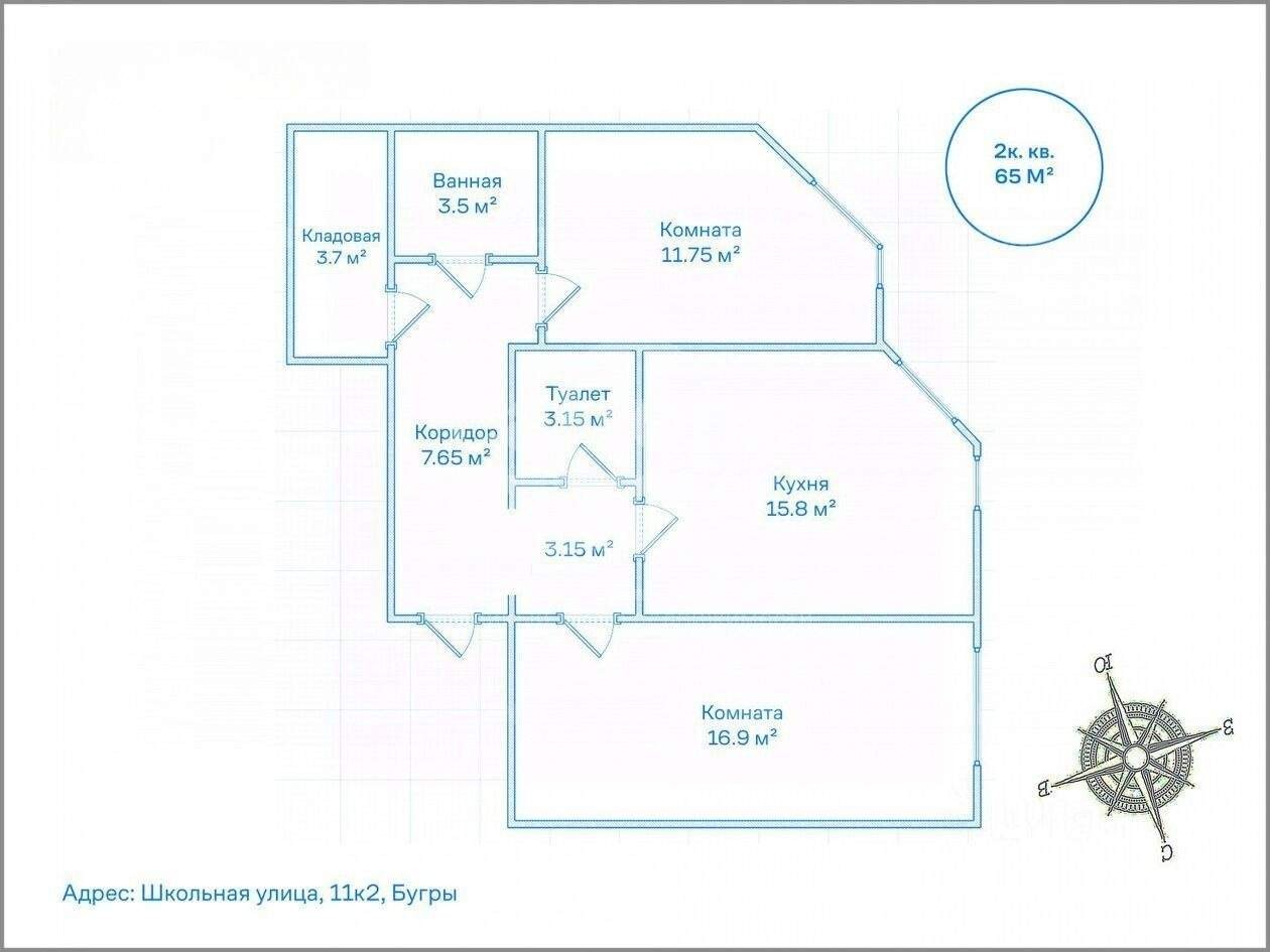 Площадь65.6 м2