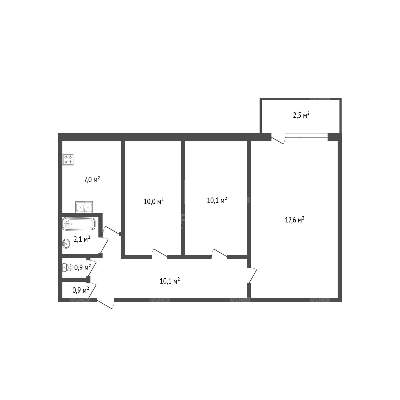 Квартира расположена на 7 этаже девятиэтажного панельного дома 1982 года постройки. Изолированные комнаты (10 кв. м, 10,1 кв. м и 17,6 кв. м) обеспечивают удобство и приватность.