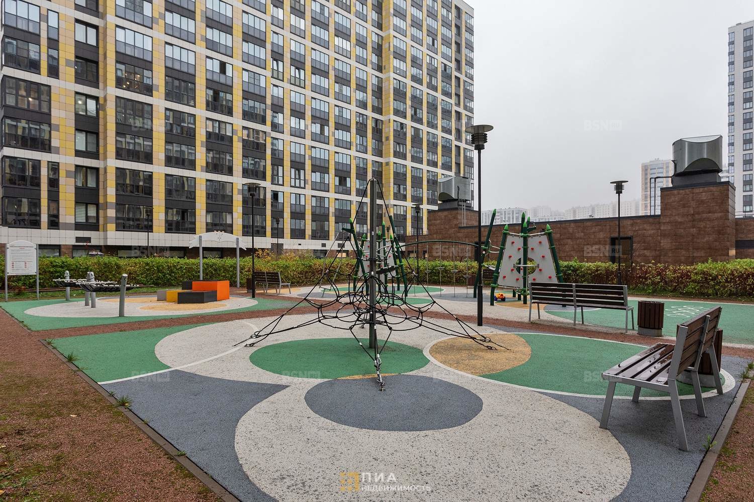 На территории двора спортивные площадки, зоны отдыха, парковки для велосипедов. Нет проблем с парковкой. Здесь безопасно и уютно. В пешей доступности несколько детских садов и школа, сетевые продуктовые магазины, аптеки, а также парк Строителей.