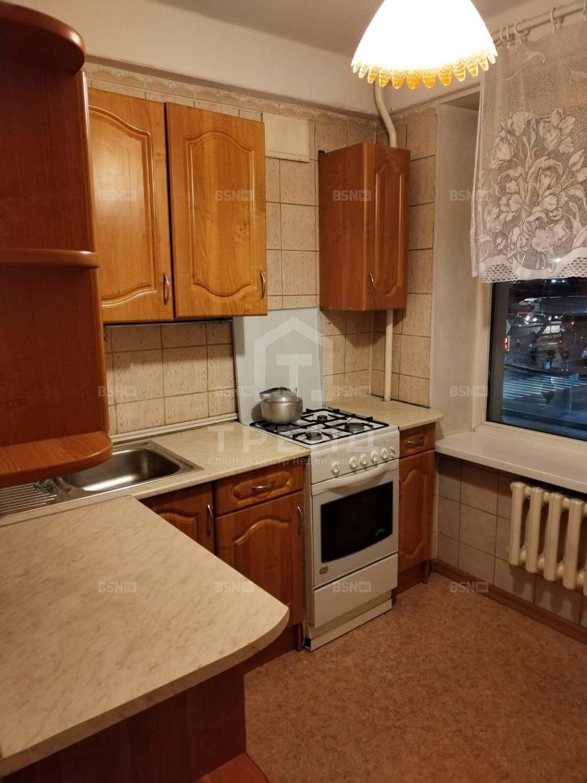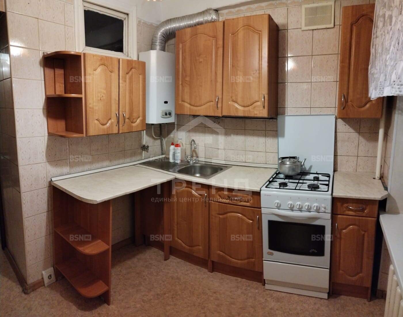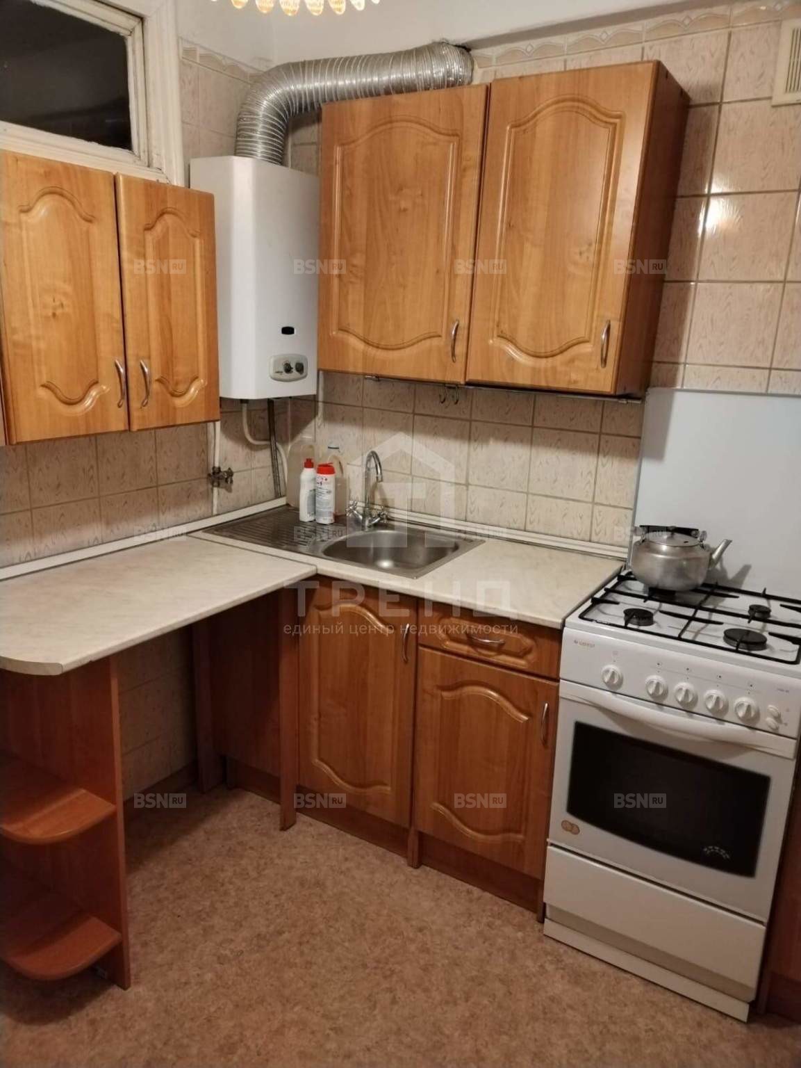 Кухня площадью 5,9 кв. м оснащена всем необходимым для комфортного приготовления пищи. Косметический ремонт позволит новым владельцам сразу заселиться или по своему вкусу обновить интерьер.