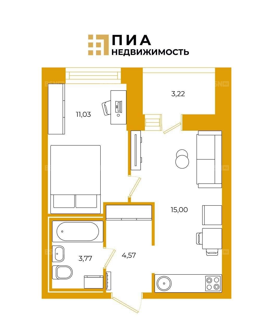 Площадь34 м2