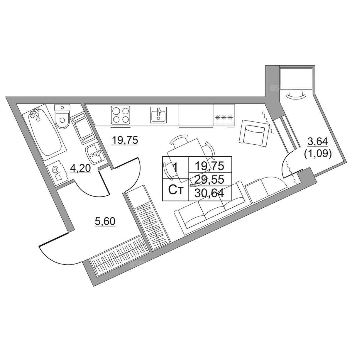 Жилая19.75 м2