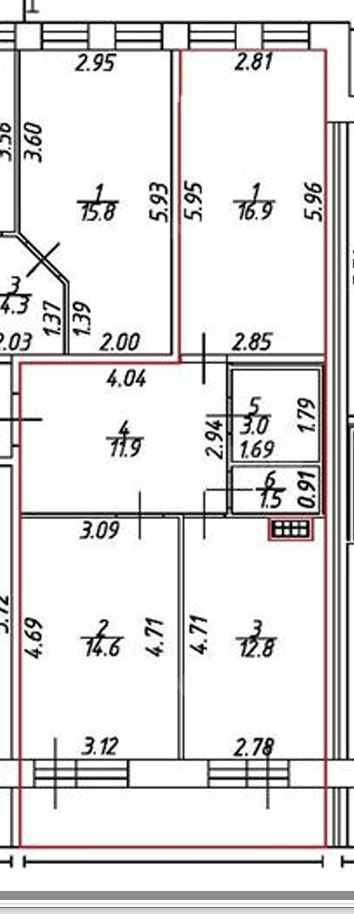 Комнаты14.6-16.9 м2